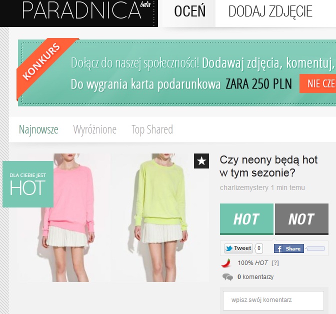 21 kwietnia 2010 at 11:28Mam do Ciebie pytane odnośnie tego konkursu. Dlaczego nie ogłosiłasz żadnych wyników, on sie odbył, czy nie? Doszło do tej sesji? nie brałam udziału w tym konkursie, bo na modelkę sie nie nadaje, ale byłam bardzo ciekawa kogo wybierzecie. moim zdaniem postąpiłaś bardzo nieładnie, ogłaszasz konkurs i siedzisz cicho. jak nie masz czasu na takie rzeczy, to sie w nie nie baw. Zastanawiam, się czy napisałaś tym dziewczyną chociaż, dlaczego konkurs się nie odbył. Czytelnicy też by zresztą chcieli wiedzieć, bo nie wierze, że ta sesja się odbyła,miałaś dać tu zdjęcia więc?