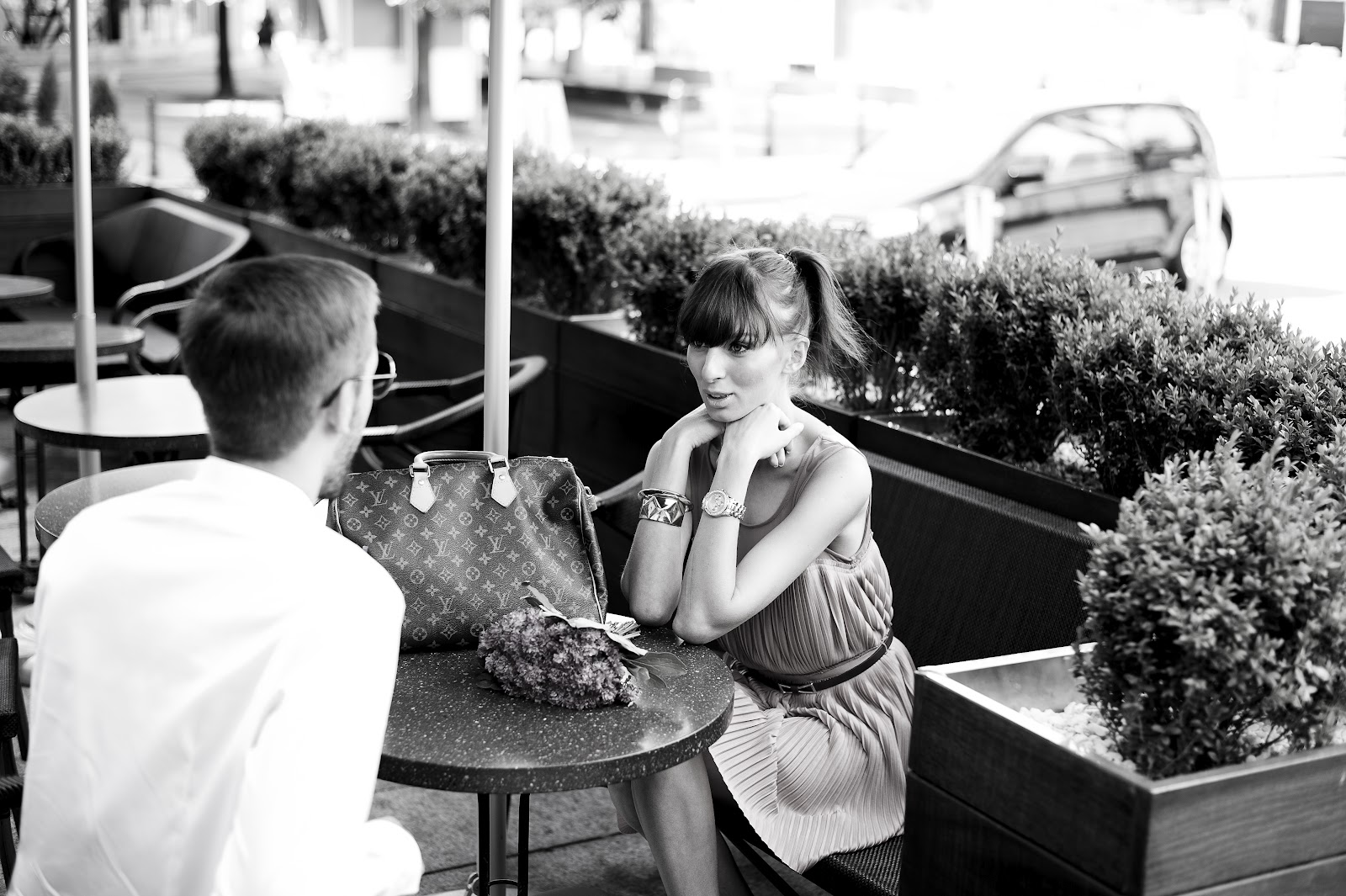 .First: MOHITO dress and belt | GUESS heels | LOUIS VUITTON bag | H&M and RESERVED bracelets