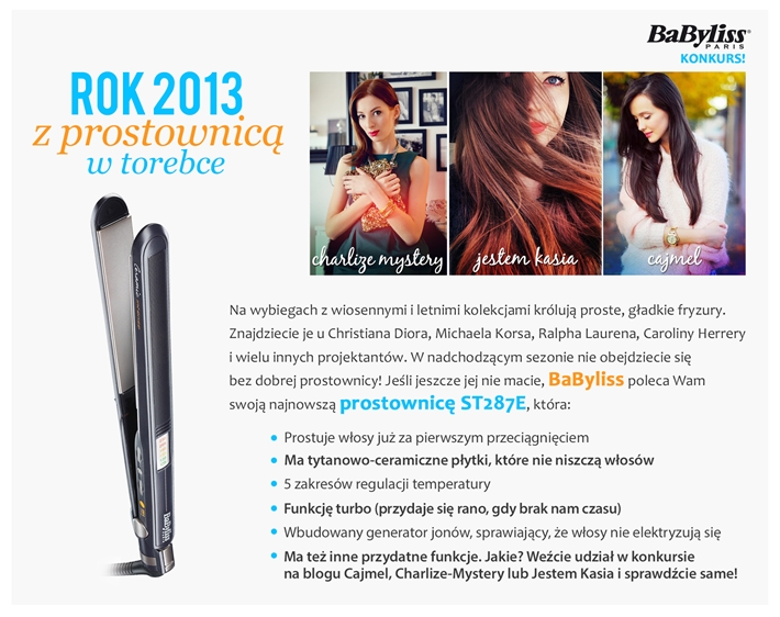 Postanowiłam więc „załatwić” dla Was kolejny 🙂 W dzisiejszym do wygrania są cztery prostownice marki Babyliss ST287E.