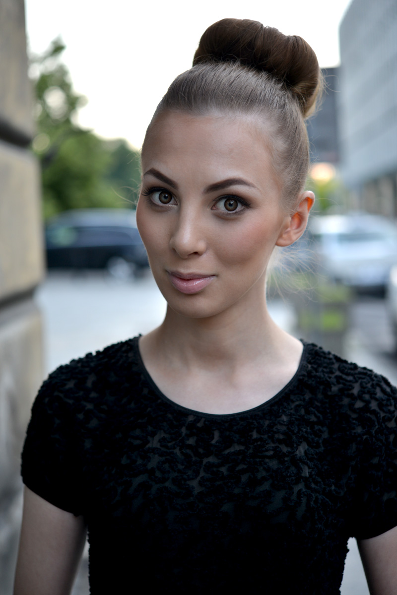 Za makijaż i fryzurę dziękuję kochanej Dorocie Chajdackiej. Powstał przy użyciu kosmetyków Chanel. Makijaże na takie imprezy rządzą się swoimi prawami- twarz musi być podkreślona bardziej niż zwykle i wykonturowana. W innym wypadku wygląda się jak śmierć pomimo (jak nam się błędnie wydawało w domu) mocnego makijażu.