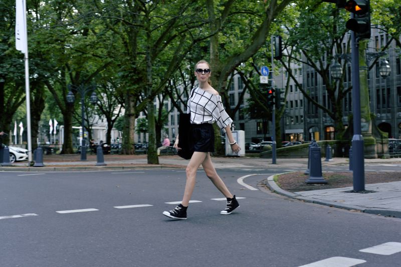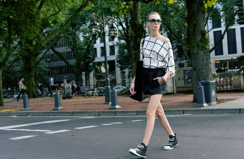 Wybieramy się na całodniowy rajd po sklepach, a ciągle chcemy pozostać „sobą” nie tracąc na wygodzie? Warto zamienić jedynie dwa elementy by cały zestaw zmienił charakter z tego biurowego/wieczornego na dzienny look. Szpilki zamieniamy na sneakersy, małą torebkę na torbę xxl, która pomieści nasze „skarby” i gotowe!