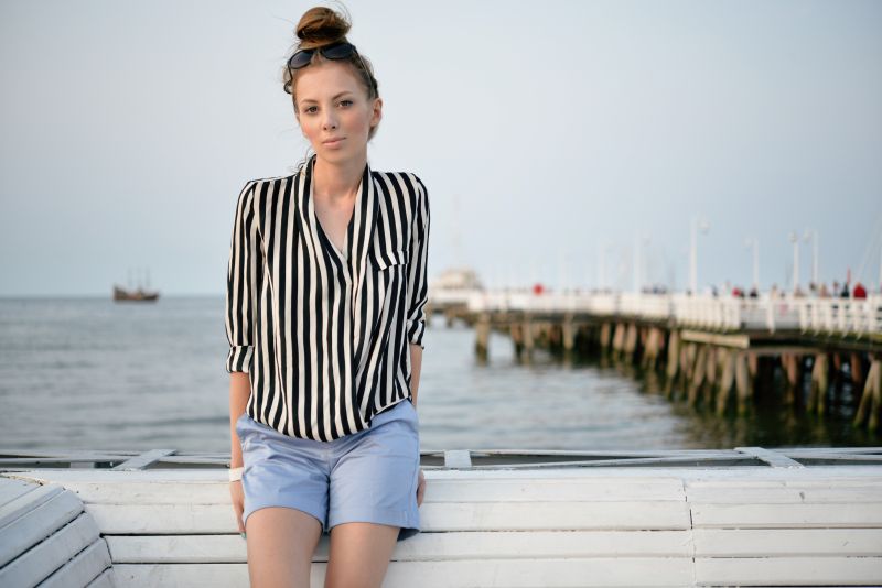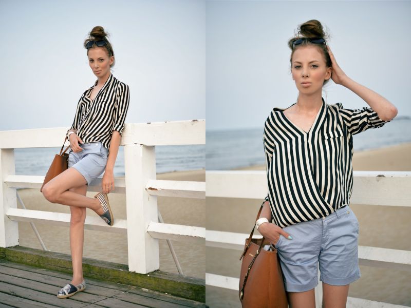 Nadmorskie zdjęcia nie mogły obyć się bez pasków i koloru niebieskiego. Do całości dodałam trochę „fun’u” nietypowymi espadrylami. Dewiza marki, która wyprodukowała te buty brzmi: „Nie bierz życia zbyt serio” i w wypadku tej stylizacji wpisuje się idealnie. Miało być lekko, wakacyjnie, bez idealnie ułożonych włosów czy niebotycznie wysokich obcasów. Ale przede wszystkim-dalej w moim stylu!
