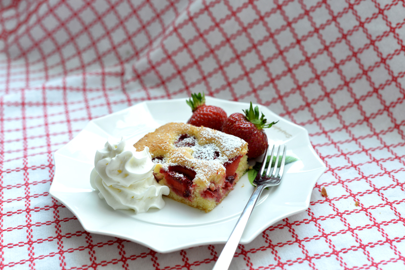 Czekacie na gości, nie macie nic słodkiego w lodówce a macie tylko godzinę? Ten przepis jest dla Was. Od kilku miesięcy (gdy przepis dostałam od mamy) w „sytuacjach kryzysowych” ratuje mi życie 🙂 Jego wykonanie to 10 minut, pozostały czas to pieczenie. Nie sugerujcie się truskawkami- możecie je zrobić z prawie wszystkimi owocami.