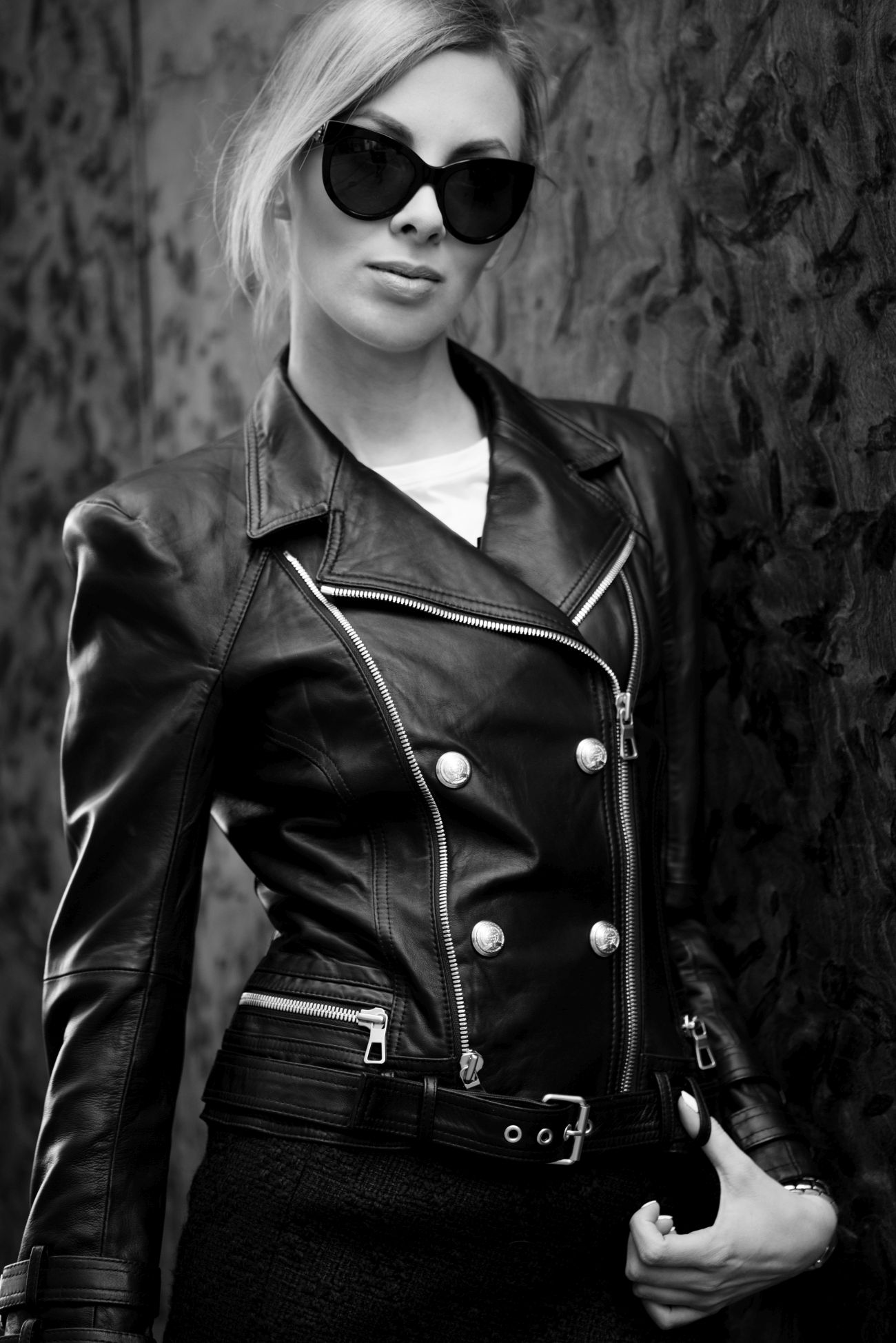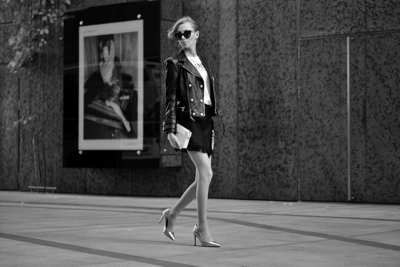 BALMAIN X H&M kurtka, tshirt | ZARA spódnica, szpilki | SABRINA PILEWICZ torebka | DOLCE&GABBANA okulary | KARL LAGERFELD zegarek