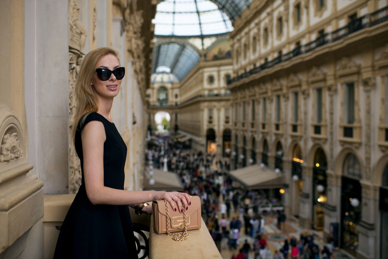 Zaraz po przylocie, udaliśmy się do hotelu. Stojąc w ogromnym korku, przekonaliśmy się co znaczy włoski temperament. W hotelu czekała na nas pyszna kolacja, na którą składało się kilka małych przystawek (mozarella była rewelacyjna!) Kolację zakończyliśmy tiramisu z nutellą- zniknęło tak szybko, że nawet nie zdążyłam mu zrobić zdjęcia. Po niej ruszyliśmy na nocne zwiedzanie Mediolanu, podczas którego powstały zdjęcia tej stylizacji.