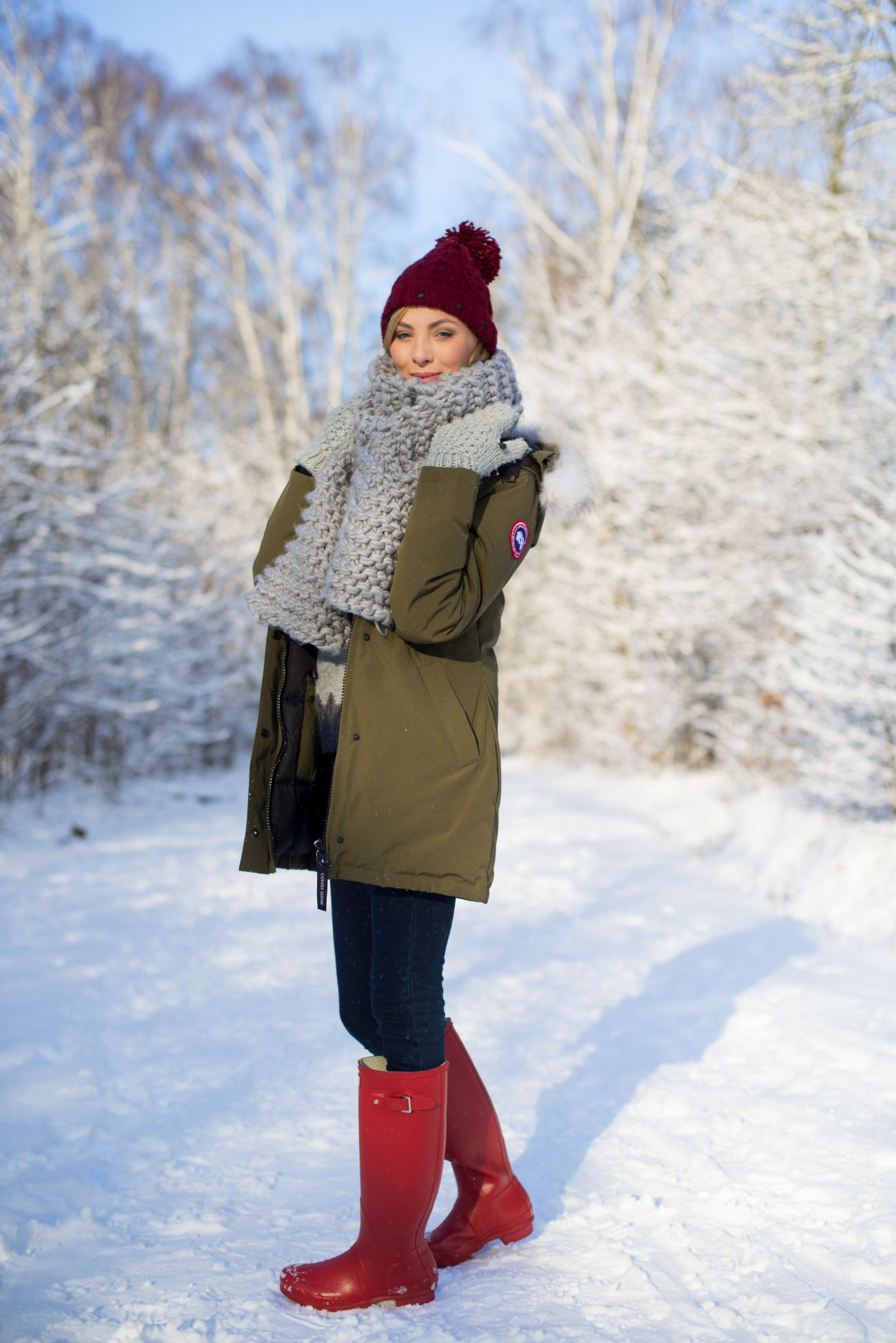 super look! świetne czerwone huntery wyglądaja wspaniale. Mam pytanie, czy nie ślizgały Ci się po sniegu?