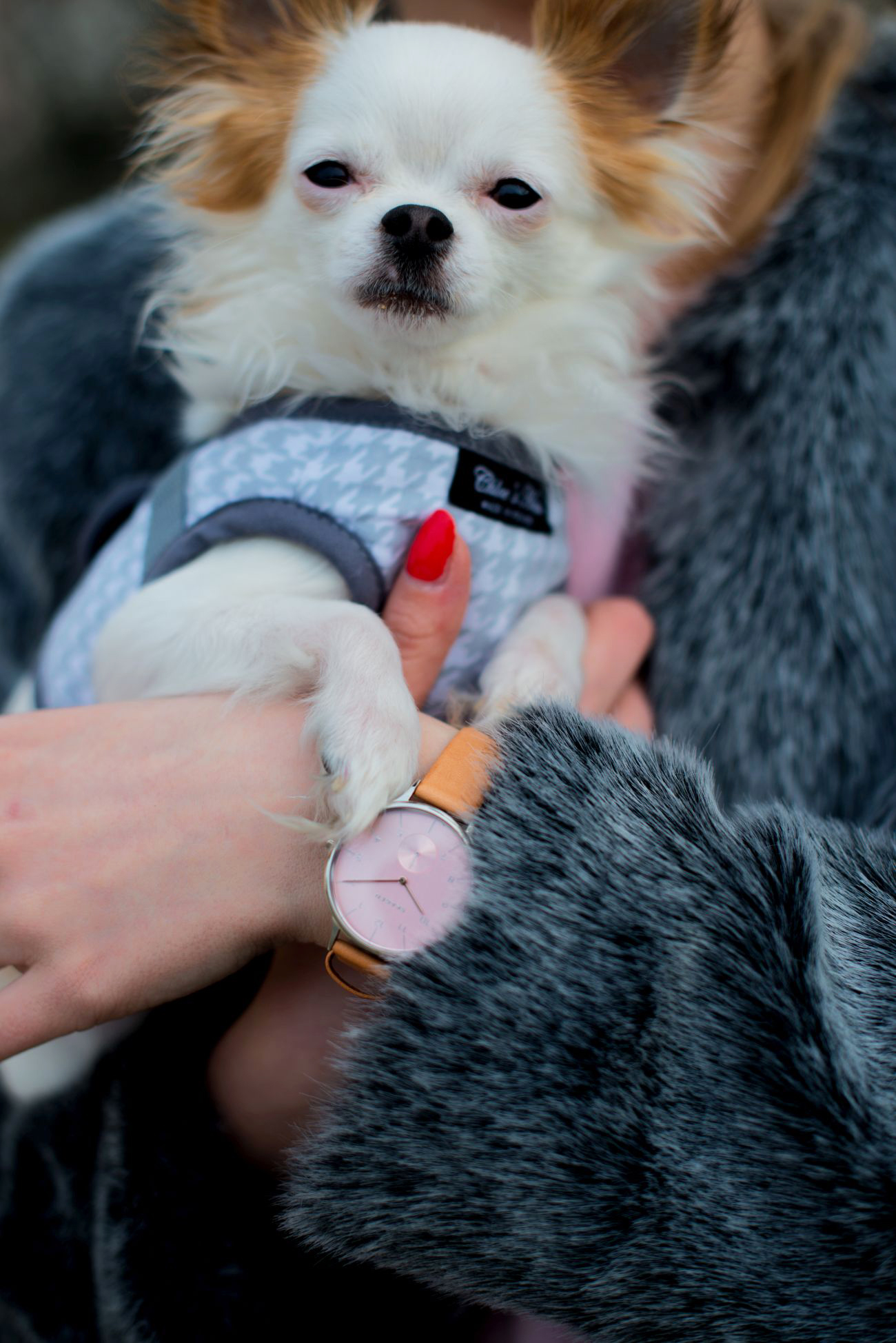 Dokładnie rok temu mogliście oglądać na blogu post z wykorzystaniem tego futerka. Pamiętam ile czasu i pracy zajęło mojej mamie wykonanie go. Tym razem sukienkę zastąpiłam bluzką i jeansami, a miejsce botków zajęły wygodne sneakersy. Ze swoim zestawem udało mi się dopasować do outfitu Mańka:)!
