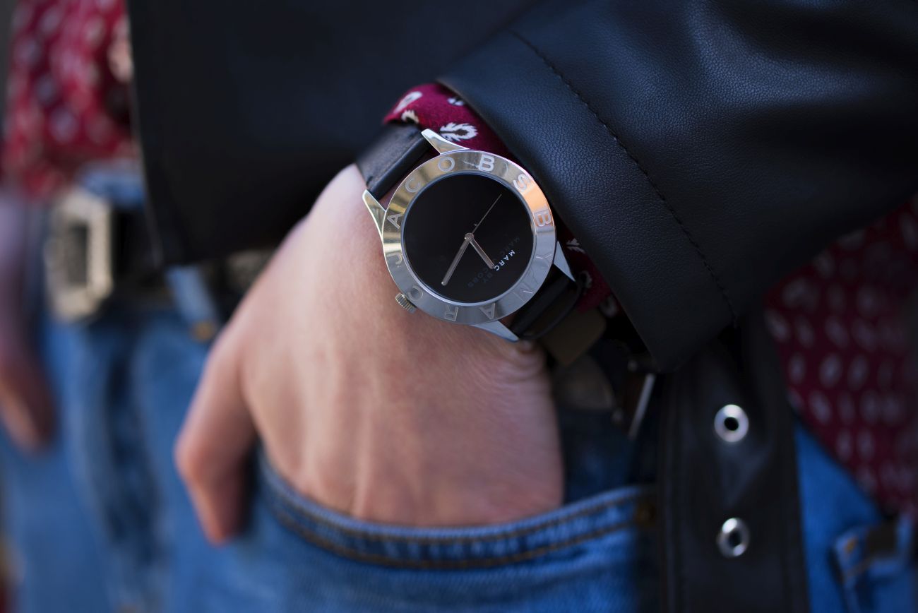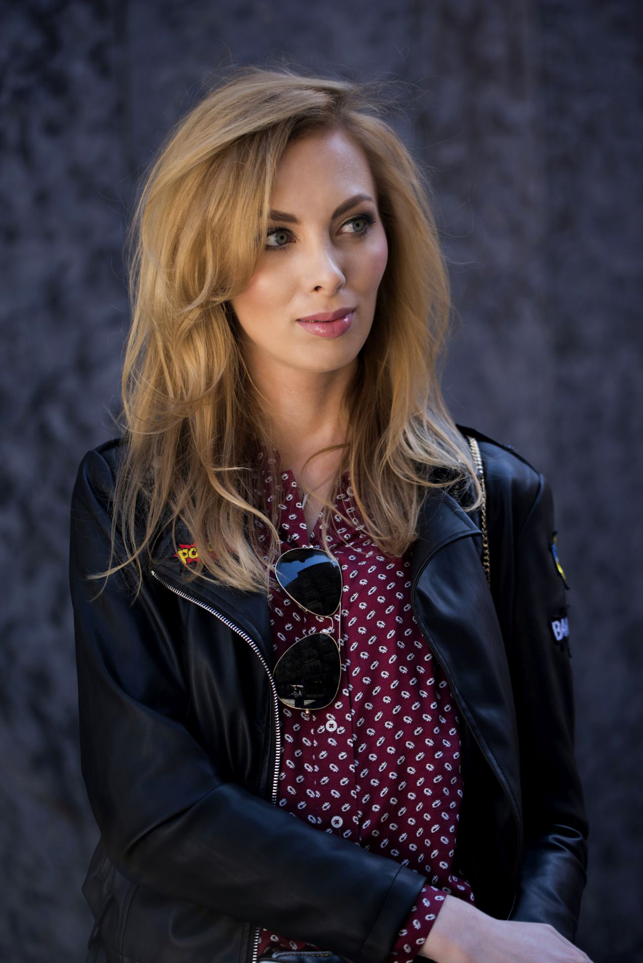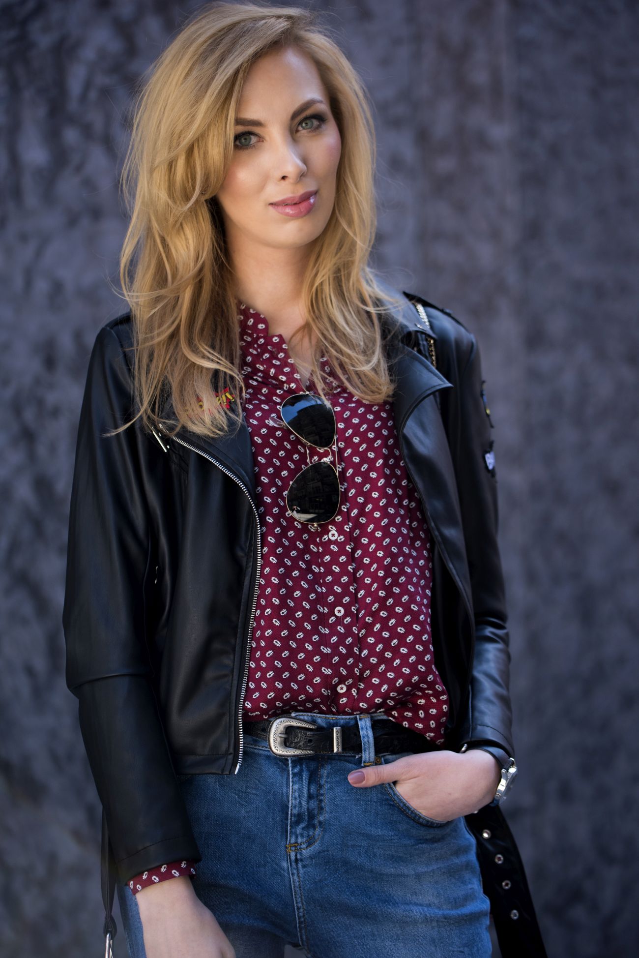 MOHITO kurtka, spodnie | MASSIMO DUTTI koszula, pasek | GUESS szpilki | SABRINA PILEWICZ torebka | MARC JACOBS zegarek | RAY BAN okulary