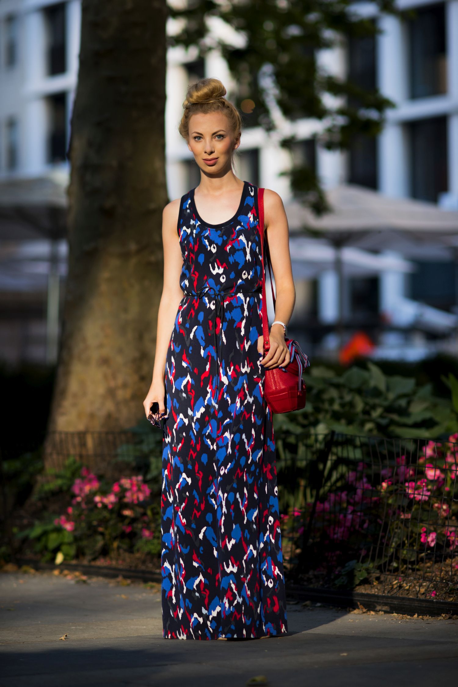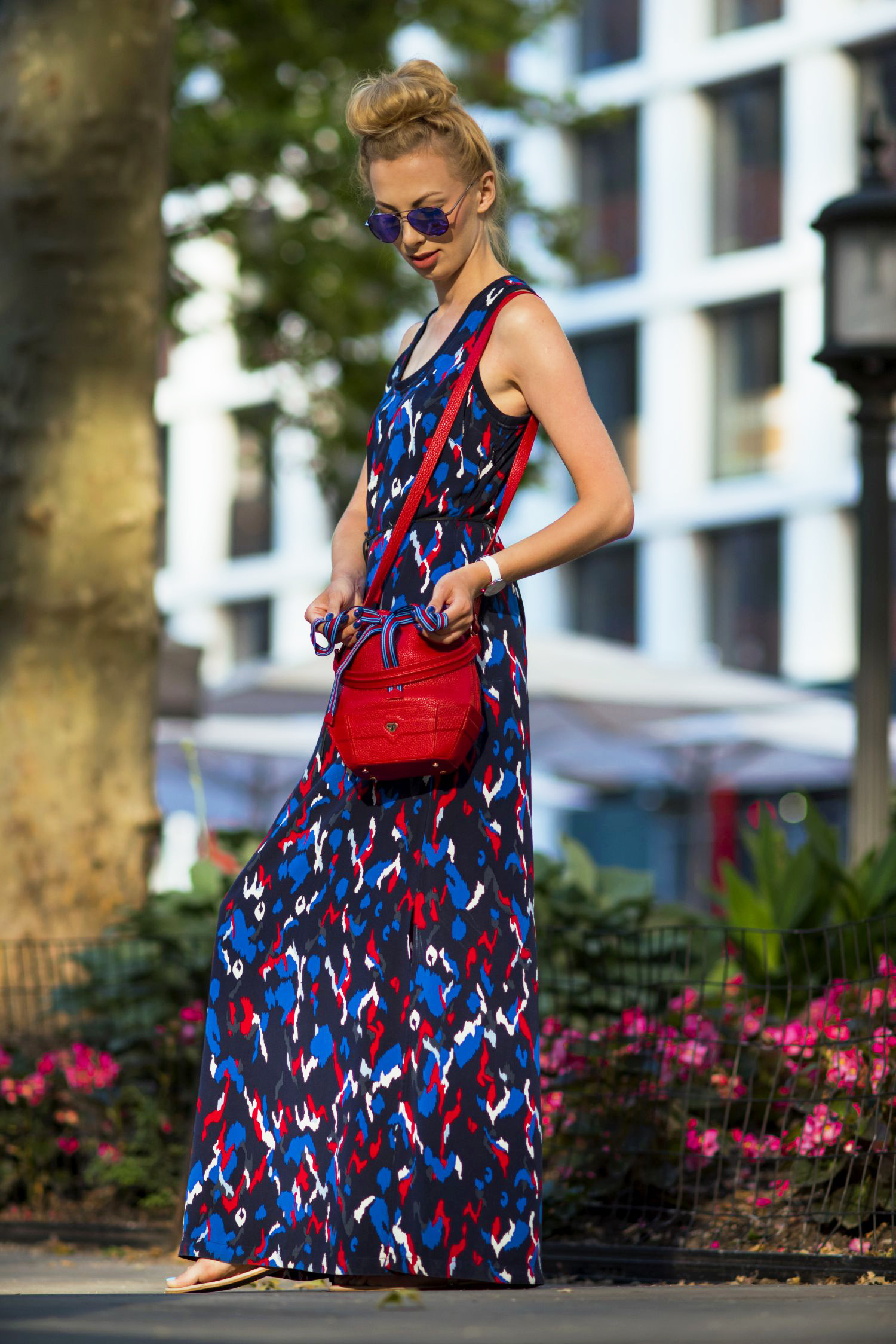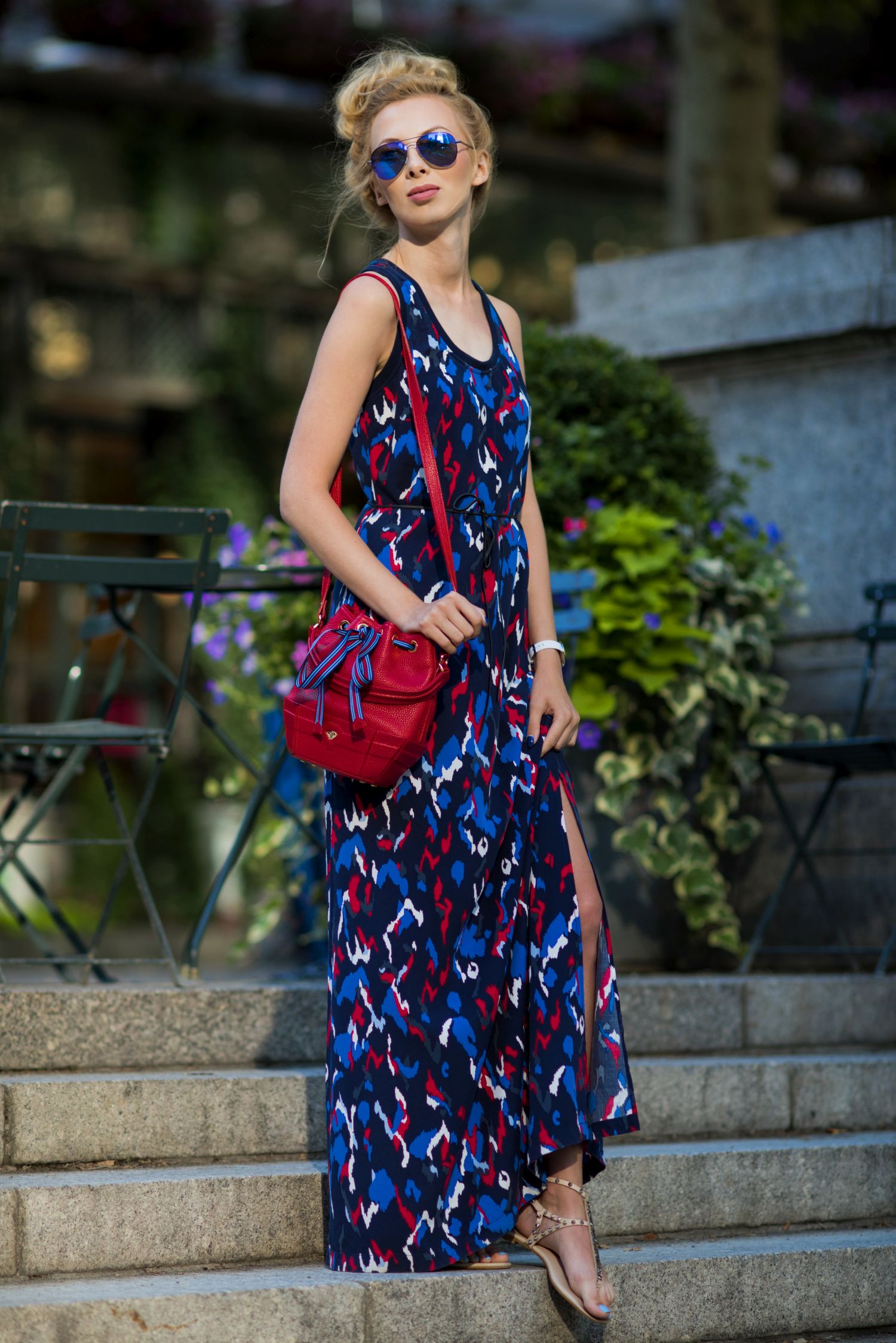 Zazwyczaj podczas wakacji większość z nas stara się złapać jak najwięcej słońca, by skóra nabrała ładnego, brązowego koloru. W końcu która z nas nie chce mieć pięknie opalonych nóg. W tym celu nosimy krótkie szorty i spódniczki lub sukienki. W pewnym momencie nasze nogi mogą mieć już jednak przesyt i chcemy dać im trochę odpocząć od promieni słonecznych. Co jednak włożyć na siebie kiedy z nieba leje się żar i najbardziej odpowiednim strojem byłby kostium kąpielowy? Ja w takim wypadku zazwyczaj wybieram przewiewną maxi z rozcięciem po boku. Dzięki temu nie jest mi za gorąco, a moje nogi mają odrobinę ‘wolnego’ od opalania. W połączeniu z sandałkami i niedużym, lecz pakownym workiem kolorowa maxi tworzy kolejny zestaw, który doskonale sprawdził się podczas zwiedzania miasta.