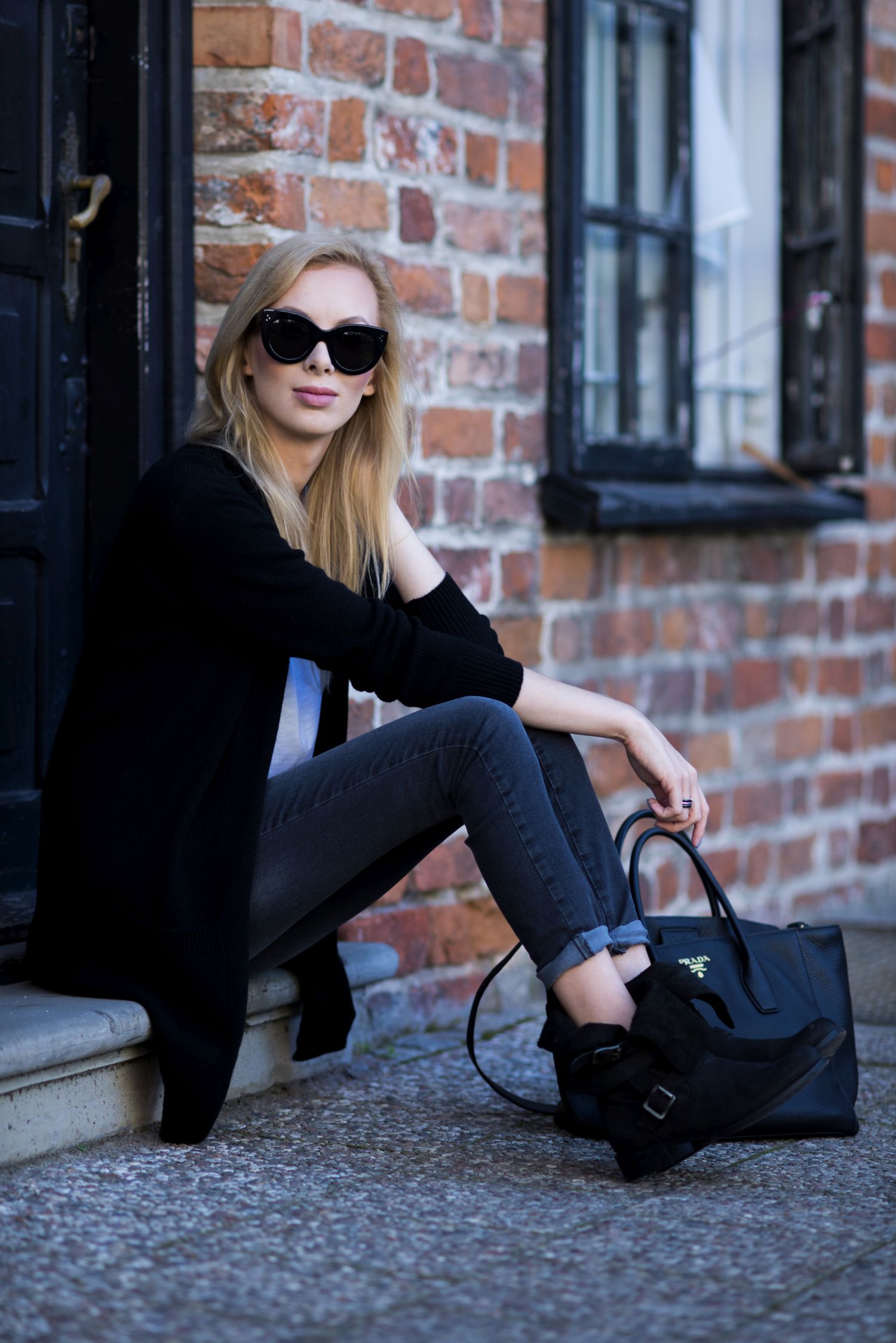 SISLEY sweter, tshirt, jeansy | WOJAS buty | PRADA torebka | CELINE okulary | MANGO pasek | APART pierścionki