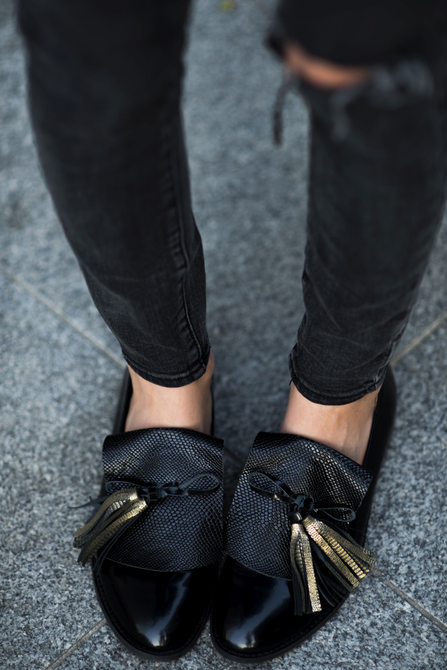 Przed imprezą dostałam wiadomość ‘ubierz się luźno, jak na domówkę z przyjaciółmi’, dlatego wyciągnęłam z szafy ulubione czarne jeansy z dziurami, rockowy tshirt, pasek z dżetami i błyszczące loafersy. Zestaw w sam raz by czuć się swobodnie i spędzić miło wieczór! A ten zapowiadał się świetnie i taki też właśnie był!