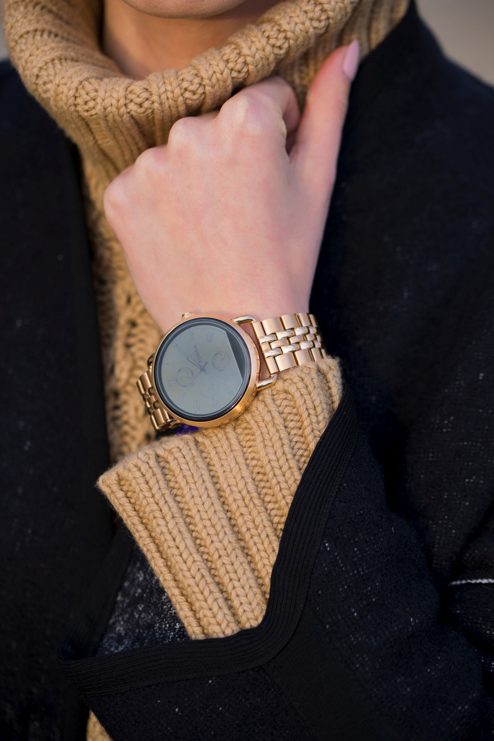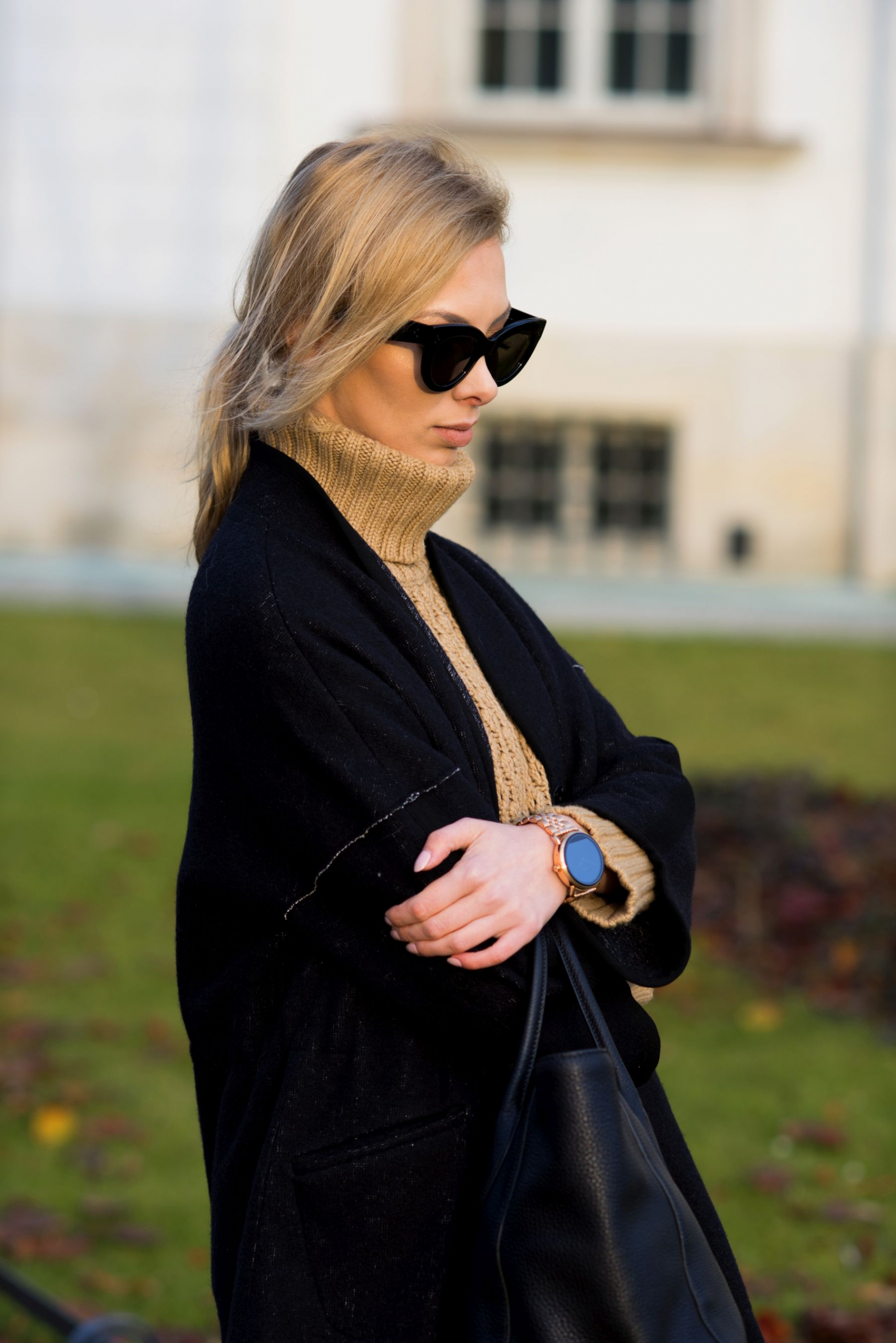 W swojej stylizacji nie mogłam zapomnieć o dodatkach, które również mają służyć mi jak najdłużej – ulubiony czarny shopper, ulubione czarne okulary i zegarek Fossil Q, który jest ze mną raptem kilka dni, a już stał się niezastąpiony. To już trzeci smartwatch jaki mam okazję testować, ale pierwszy który w pełni wpisuje się w elegancki, kobiecy styl. W zależności od tego co mam na sobie mogę zmieniać w nim bransoletę/pasek, dobierać wygląd tarczy – krótko mówiąc dopasowuje się do moich potrzeb. O innych jego zaletach opowiem Wam przy okazji kolejnych stylizacji z jego udziałem!