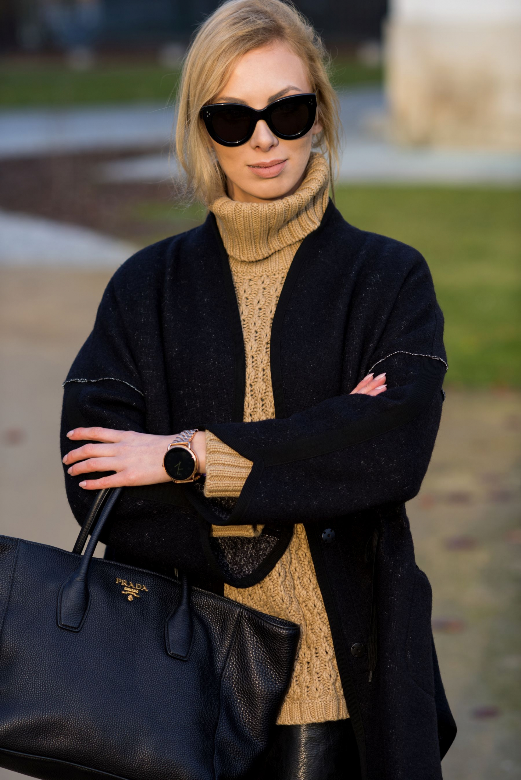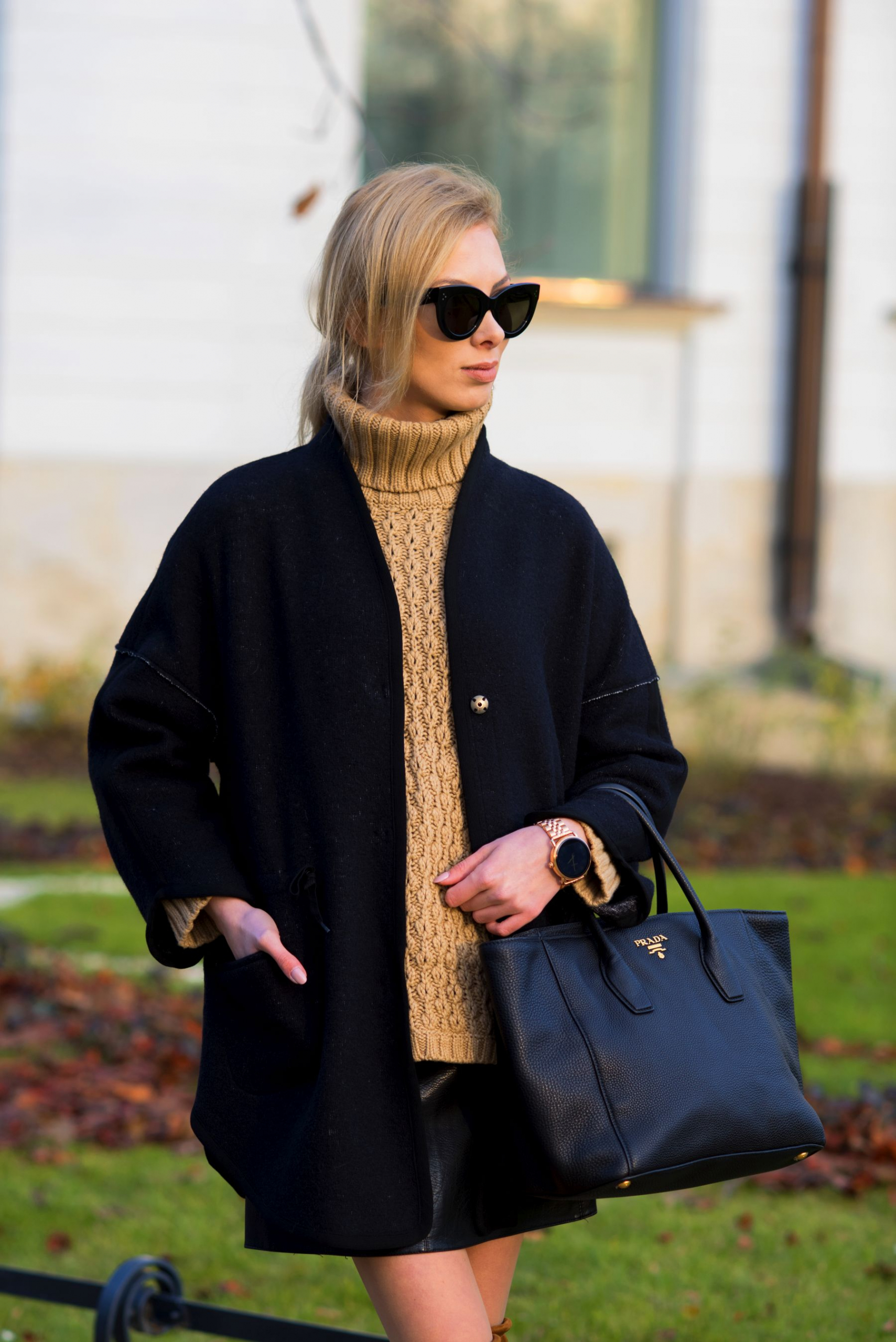 ALTRO PATRIZIA ARYTON płaszcz | MASSIMO DUTTI sweter | ZARA spódnica | LOFT37 buty | PRADA torebka | CELINE okulary | FOSSIL Q zegarek