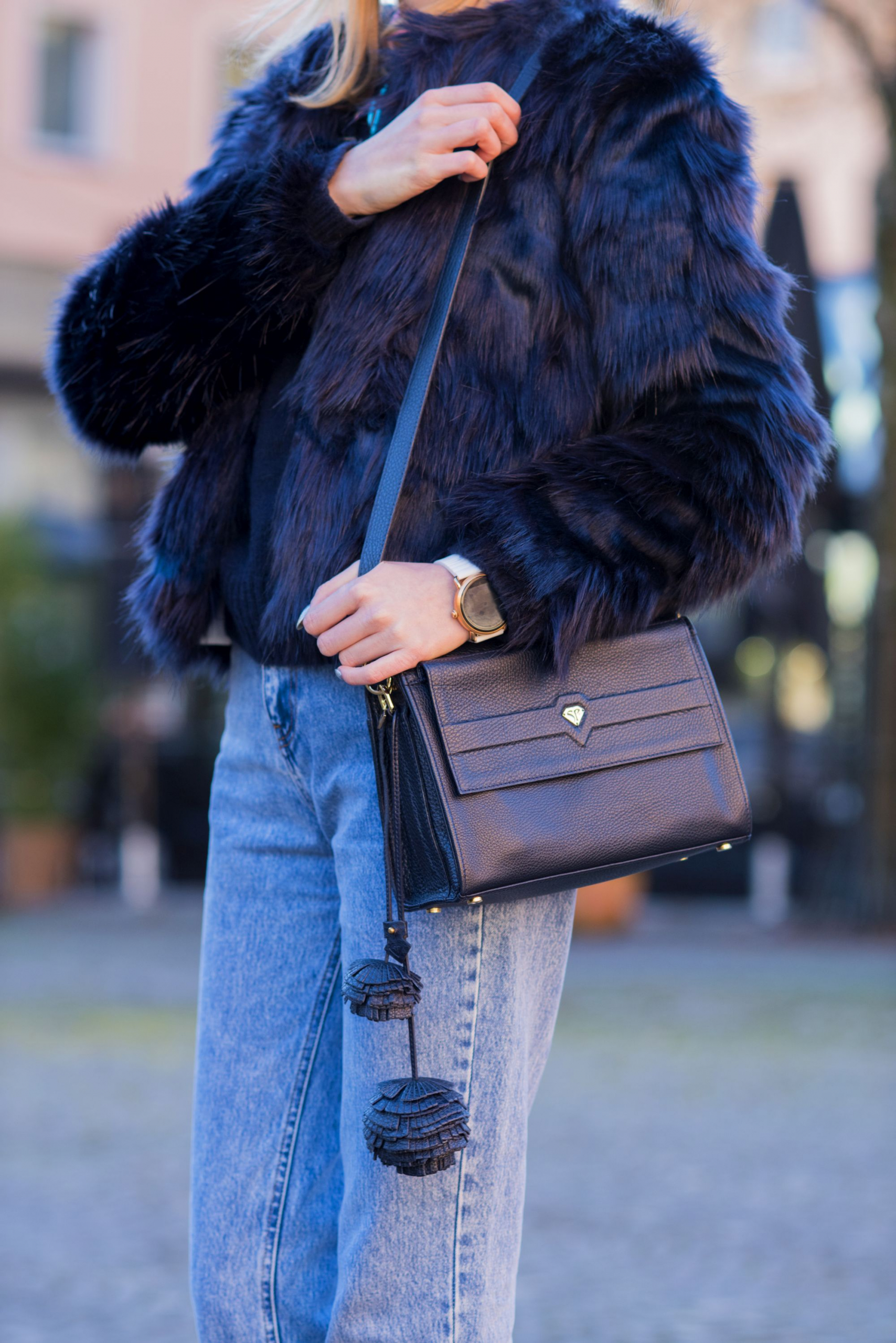 Szarość i róż. Właśnie w tych dwóch kolorach najczęściej pokazywałam Wam do tej pory na blogu sztuczne futerka. Doszłam jednak do wniosku, że z początkiem nowego 2017 roku czas rozszerzyć trochę tę kolorystykę i zaprezentować Wam jedną z nowości z mojej szafy – granatowe, sztuczne, krótkie futro z Mango.