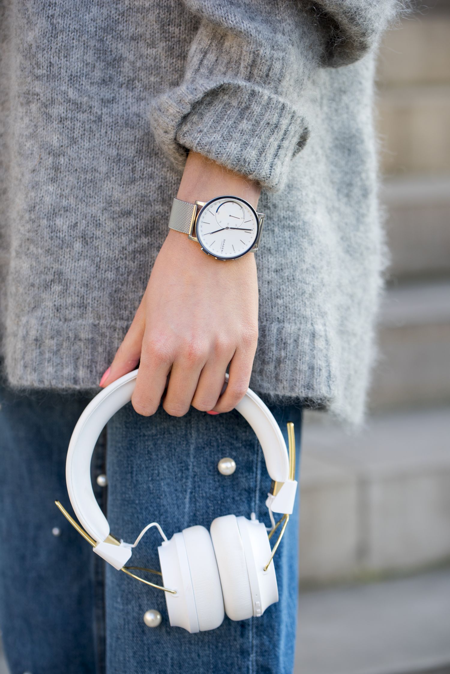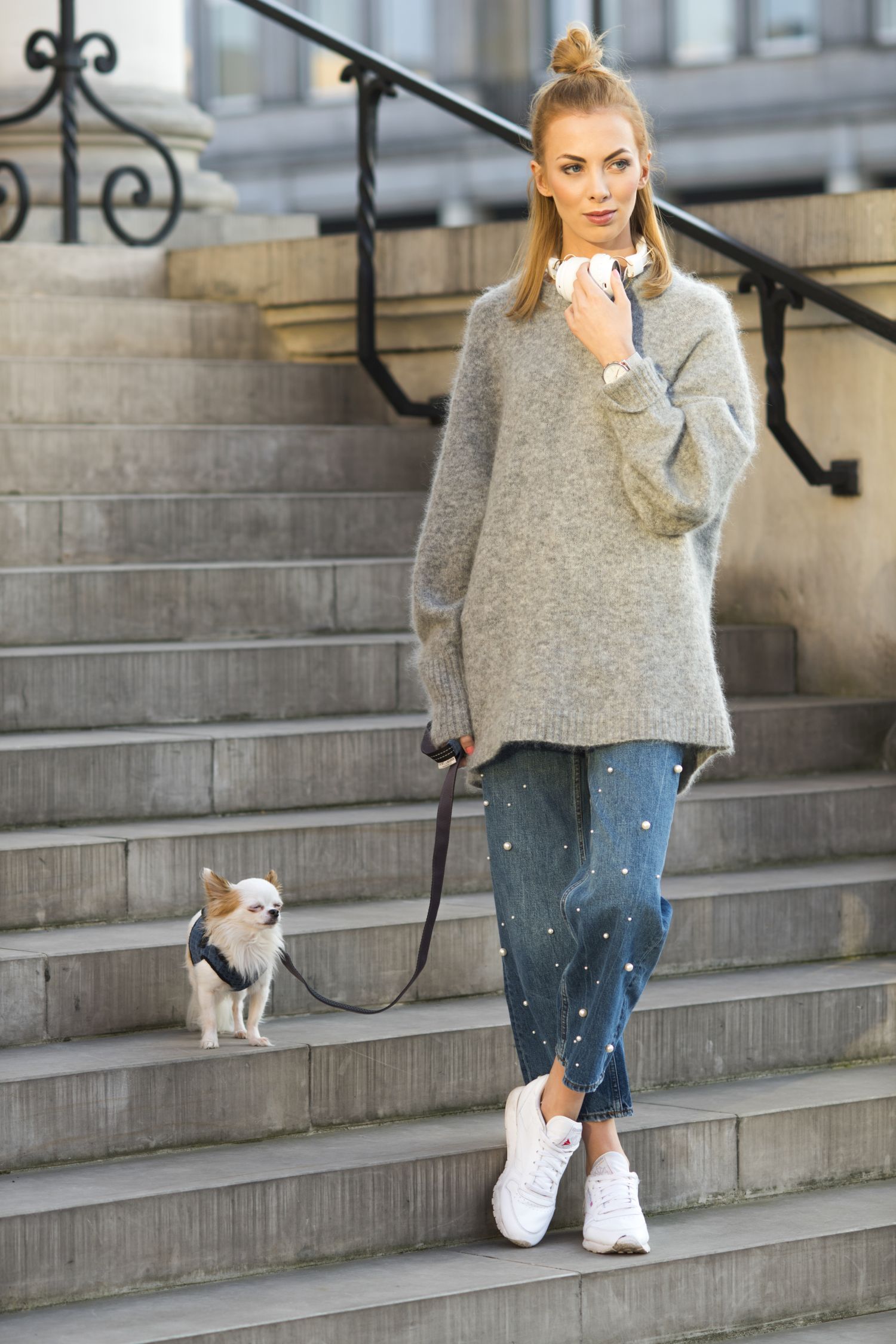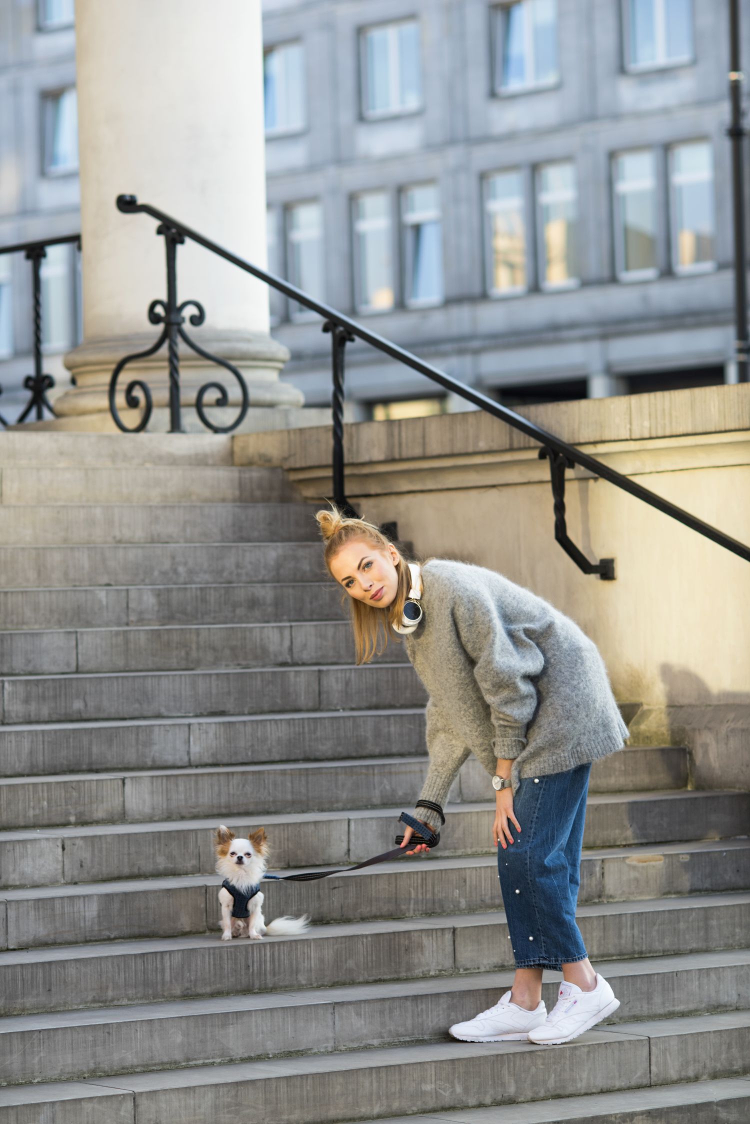Dziś pokażę Wam natomiast mój zestaw, w którym przemierzałam kolejne uliczki miasta. Jak zwykle w takich wypadkach podstawą były dla mnie wygodne buty. Reebok Classic należą do moich faworytów pod tym względem. Ciepły, ale już nie najgrubszy sweter chronił mnie przed wiatrem, którego nie sposób uniknąć nad jeziorem, szczególnie w okolicach gór. Wisienką na torcie są natomiast szerokie jeansy przed kostkę pokryte z przodu perełkami. Szwajcaria jest krajem zegarków, więc jego również nie mogło zabraknąć w mojej stylizacji. Moje serce najmocniej bije w kierunku duńskiej marki Skagen, która niedawno wypuściła na rynek linię zegarków hybrydowych. Z zewnątrz wygląda jak klasyczny zegarek, ale w środku kryje sporo udogodnień. Po połączeniu ze smartfonem liczy nasze kroki, pokazuje godzinę w dwóch strefach czasowych. Ponadto można go ustawić w ten sposób by pokazywał przy pomocy małej tarczy, kto do nas dzwoni. Oczywiście ma w sobie również budzik. W końcu, gdzie jak gdzie, ale w Szwajcarii trzeba wstawać punktualnie!