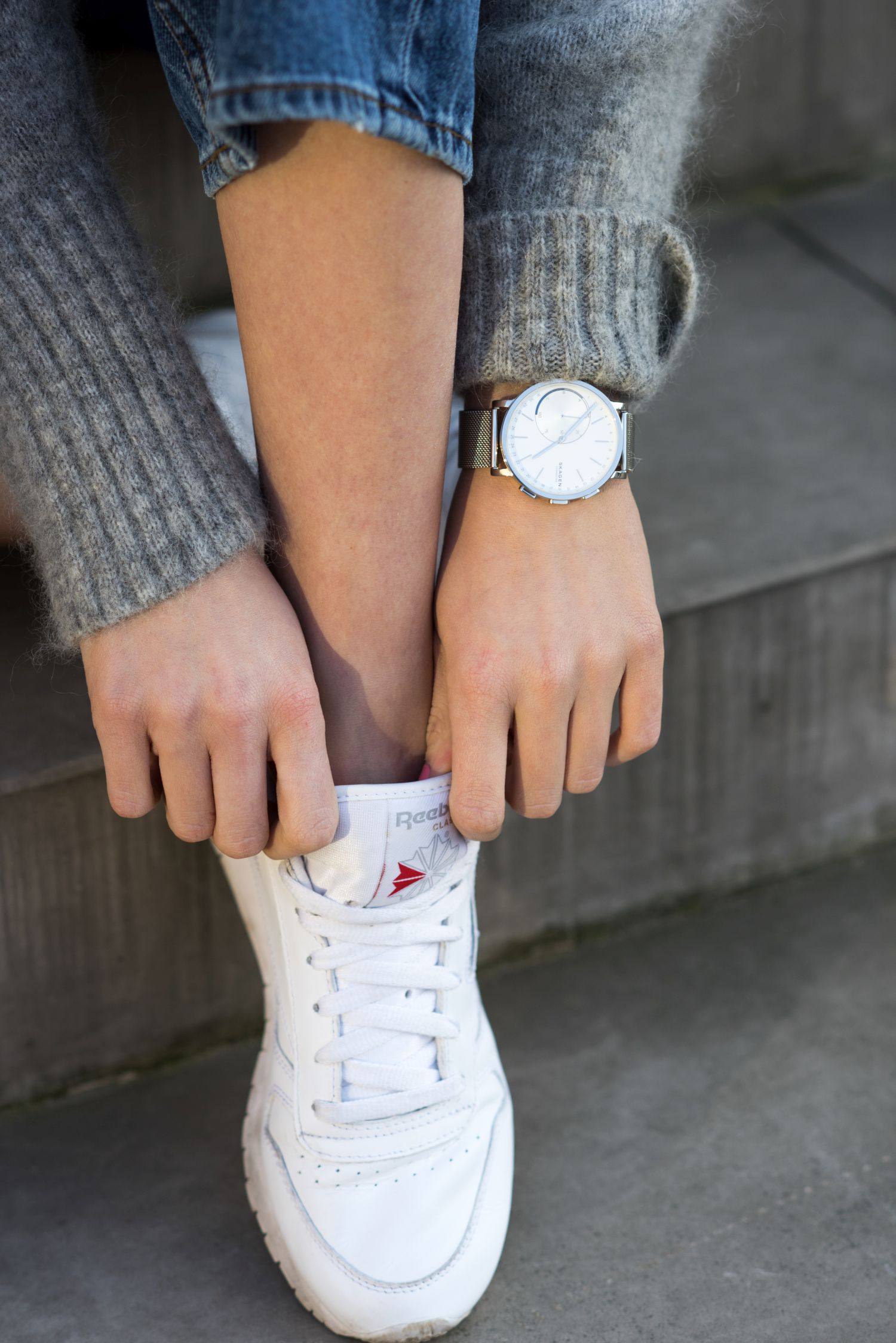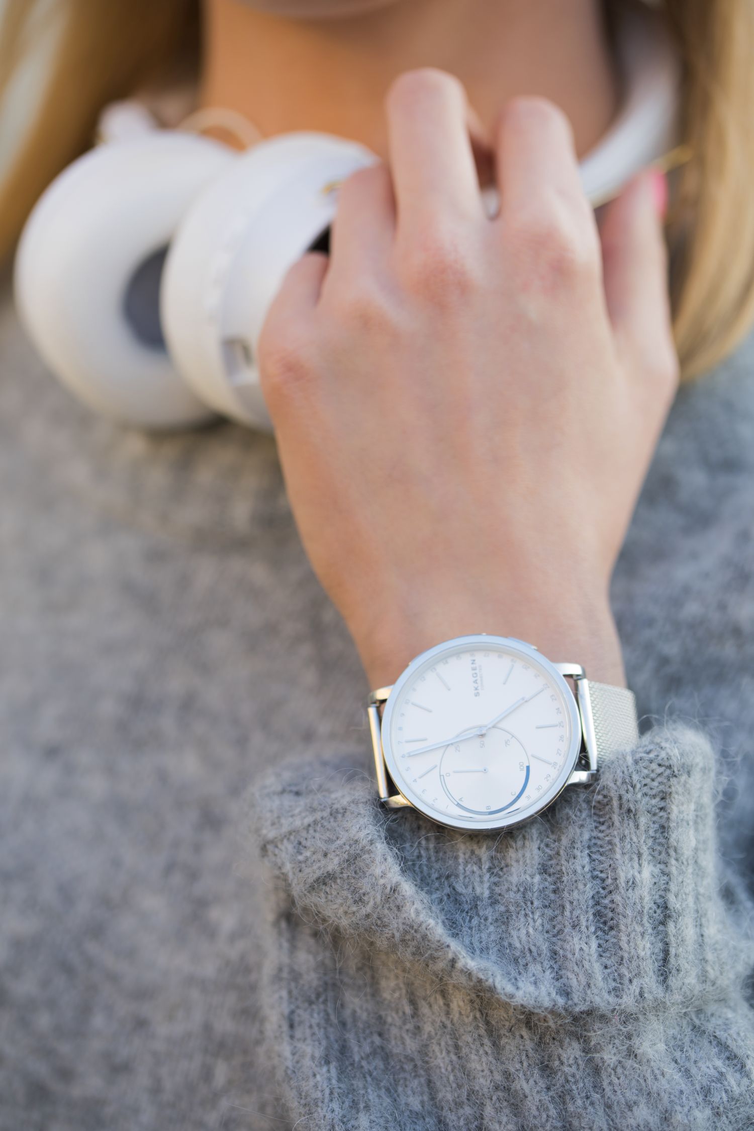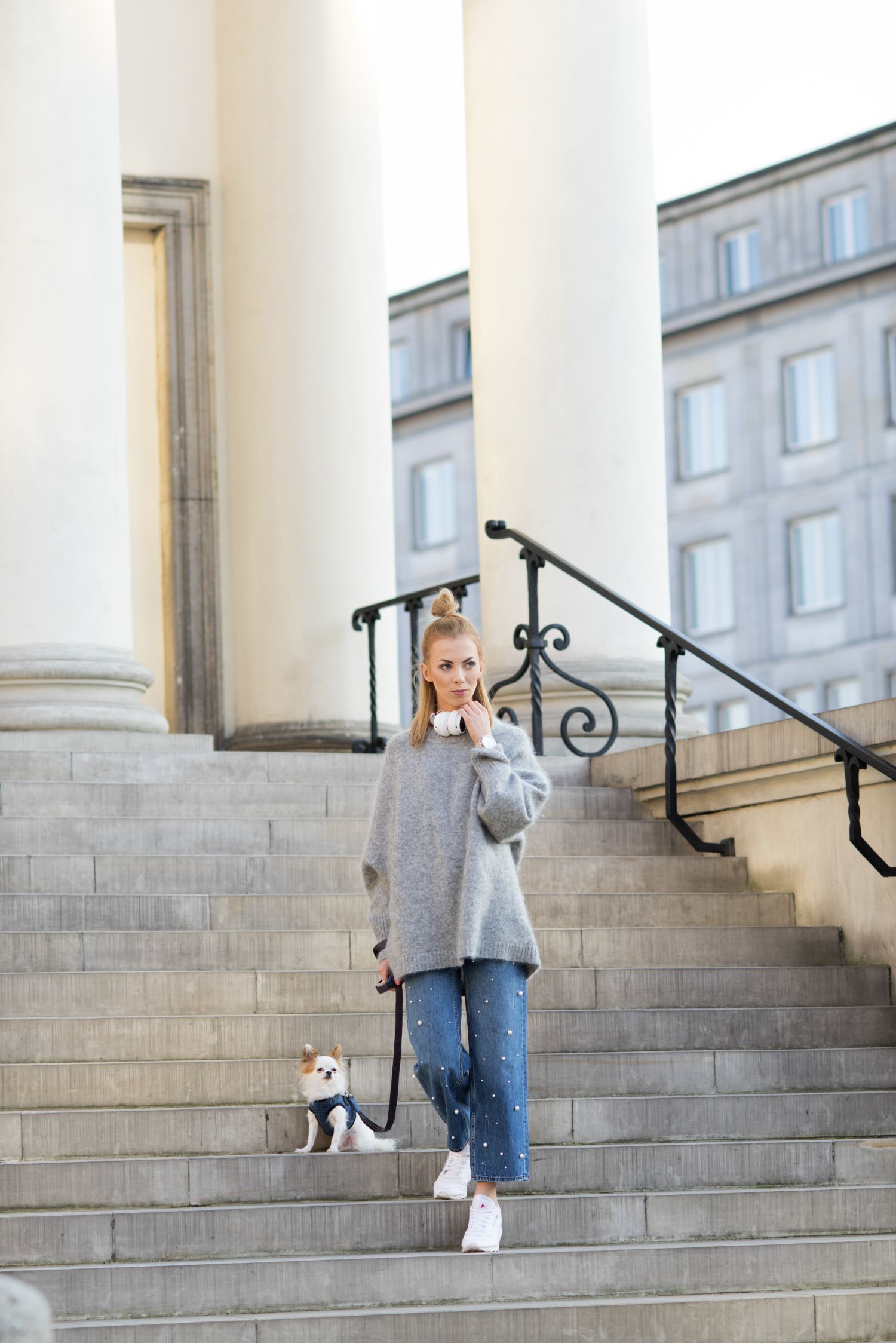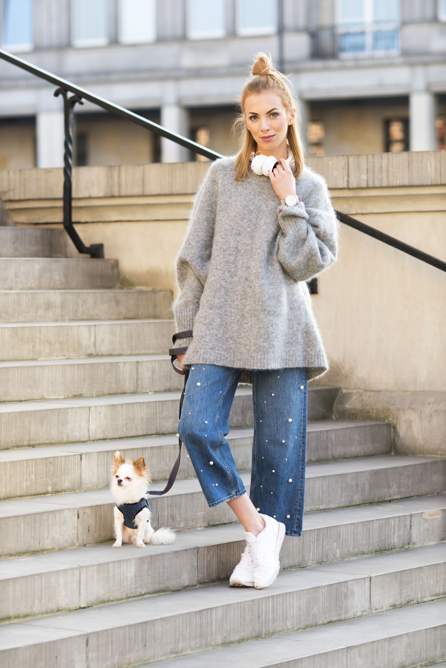 Dziś pokażę Wam natomiast mój zestaw, w którym przemierzałam kolejne uliczki miasta. Jak zwykle w takich wypadkach podstawą były dla mnie wygodne buty. Reebok Classic należą do moich faworytów pod tym względem. Ciepły, ale już nie najgrubszy sweter chronił mnie przed wiatrem, którego nie sposób uniknąć nad jeziorem, szczególnie w okolicach gór. Wisienką na torcie są natomiast szerokie jeansy przed kostkę pokryte z przodu perełkami. Szwajcaria jest krajem zegarków, więc jego również nie mogło zabraknąć w mojej stylizacji. Moje serce najmocniej bije w kierunku duńskiej marki Skagen, która niedawno wypuściła na rynek linię zegarków hybrydowych. Z zewnątrz wygląda jak klasyczny zegarek, ale w środku kryje sporo udogodnień. Po połączeniu ze smartfonem liczy nasze kroki, pokazuje godzinę w dwóch strefach czasowych. Ponadto można go ustawić w ten sposób by pokazywał przy pomocy małej tarczy, kto do nas dzwoni. Oczywiście ma w sobie również budzik. W końcu, gdzie jak gdzie, ale w Szwajcarii trzeba wstawać punktualnie!