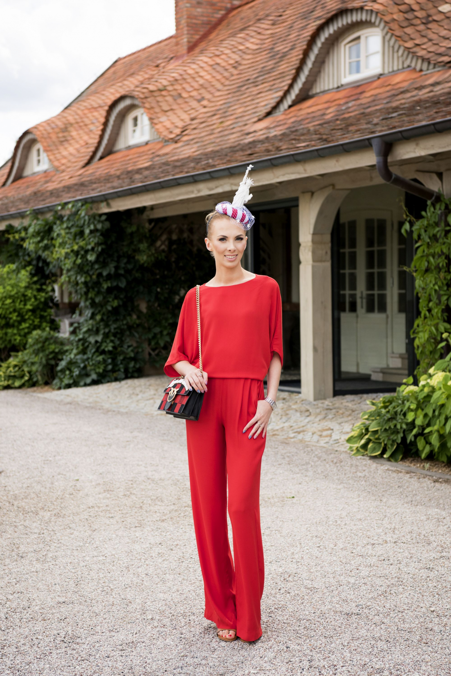 Po śniadaniu miałam dłuższą chwilę żeby przygotować swoją stylizację i toczek na legendarny już konkurs kapeluszy. Wybrałam na tę okazję czerwony kombinezon z odkrytymi plecami z Massimo Dutti, torebkę Pinko i toczek nawiązujący do mojego ukochanego Nowego Jorku, z brokatową Statuą Wolności w jego centralnej części. Toczek wykonała specjalnie dla mnie niezwykle utalentowana Kamila Fyda-Sikorska.