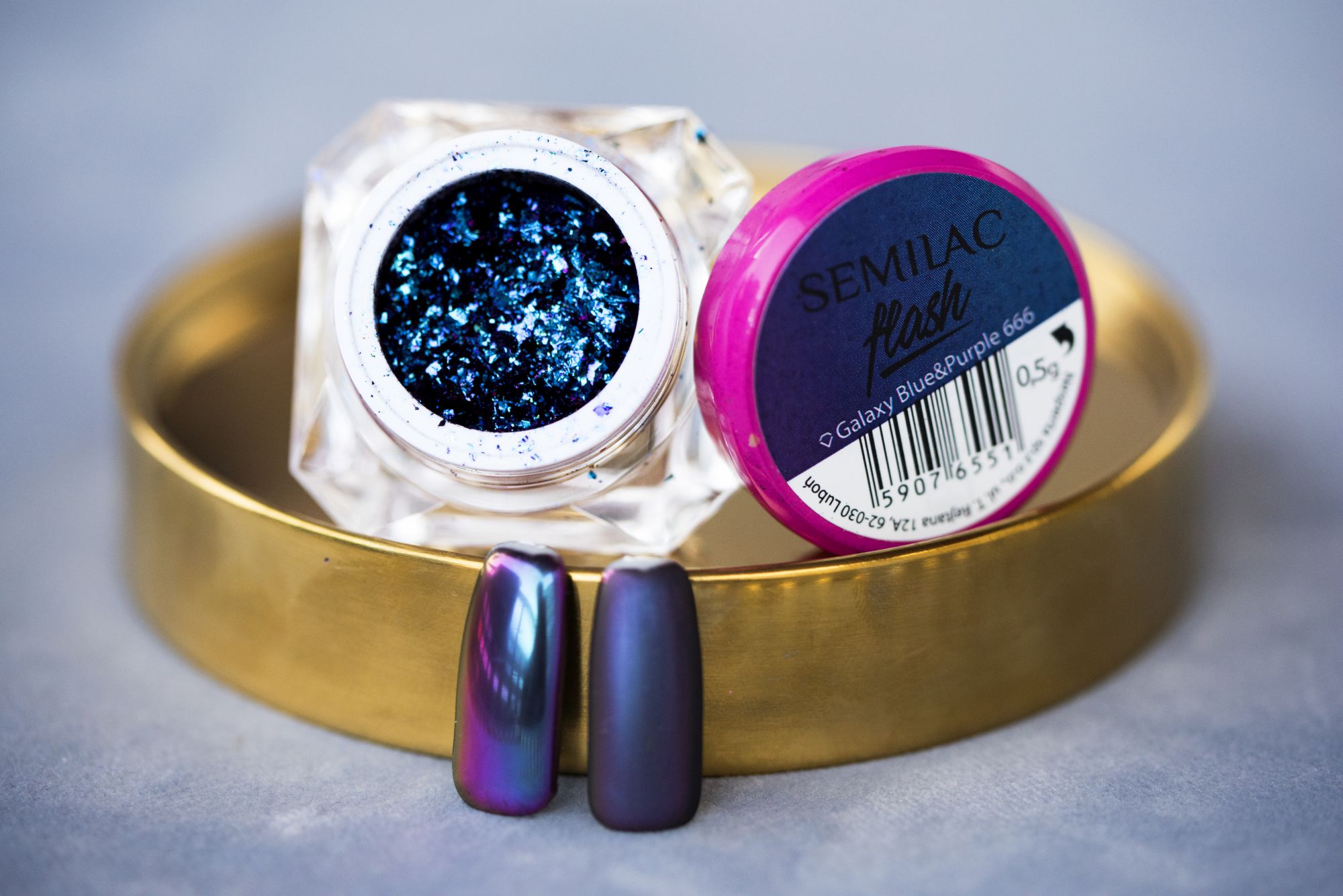 Na koniec pyłki z kolekcji Galaxy. W zeszłym miesiącu pokazywałam Wam tutorial jak wykonać manicure przy użyciu pyłków. Teraz pokażę Wam jak prezentują się pozostałe kolory z klasycznym topem i z topem ‘No Wipe’.