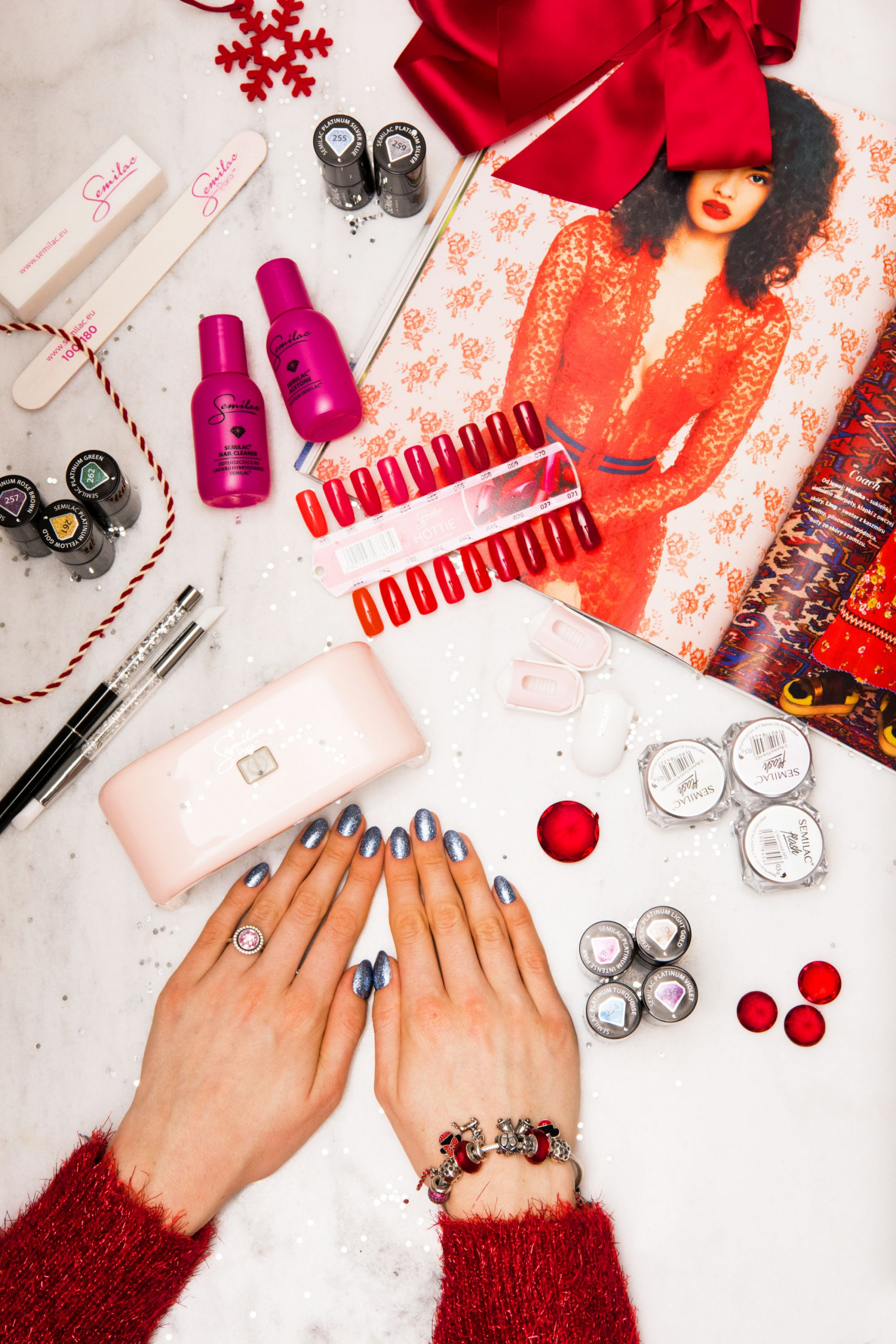 Lakiery hybrydowe to wybawienie dla damskich paznokci. Używam ich już ponad rok i zastanawiam się czemu nie używałam ich wcześniej regularnie! Dłonie są naszą wizytówką, podobnie jak piękne, zadbane paznokcie. Z lakierami hybrydowymi nie musimy obawiać się odpryśnięć, a nasze paznokcie przez długi czas wyglądają idealnie. Zestaw startowy Semilac będzie doskonałym prezentem, od którego można rozpocząć przygodę z hybrydą w domowym zaciszu. Zerknijcie też na najnowszą kolekcję Platinum- będzie idealna na święta lub sylwestra!