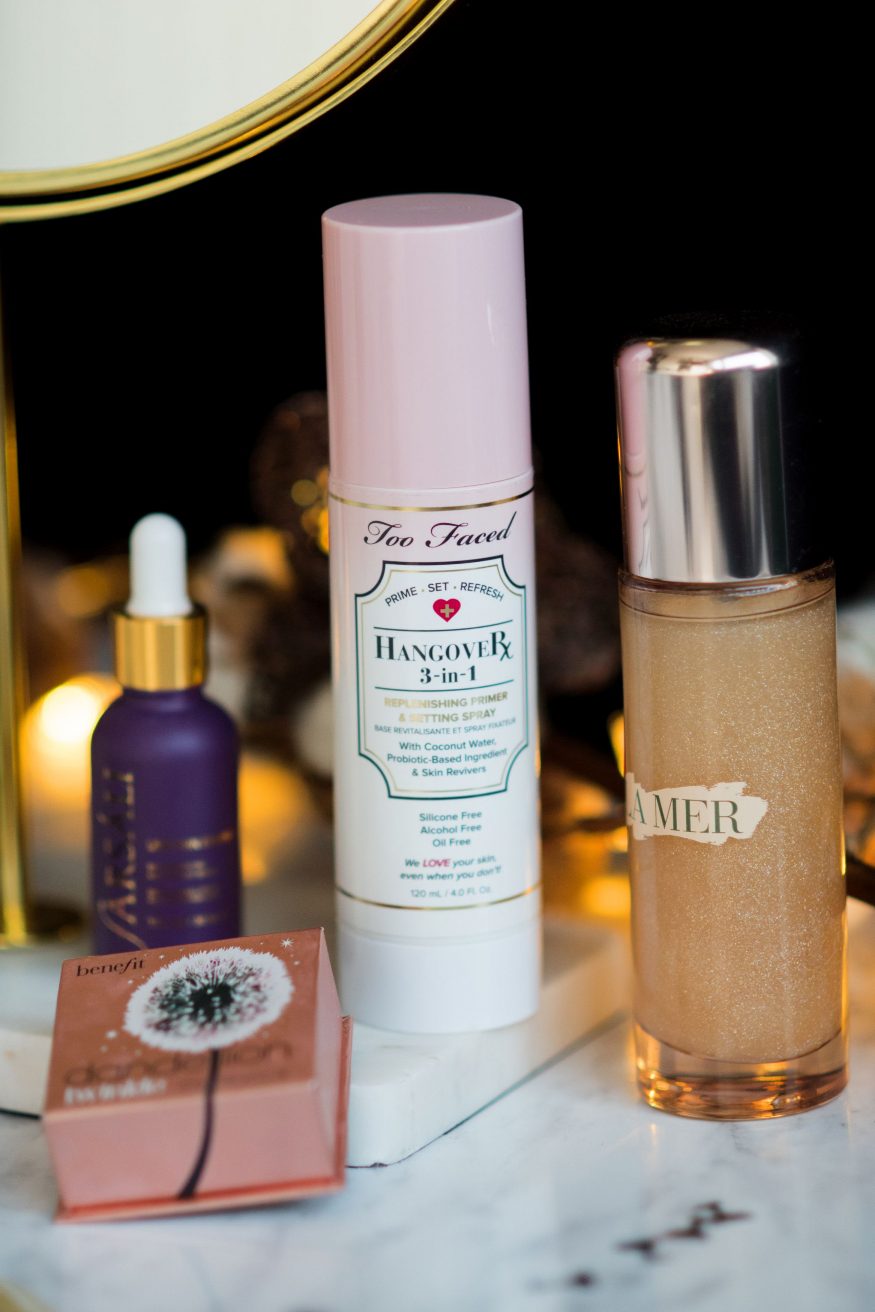 -Too Faced „Hangover 3 in 1 Setting Spray” (ostatni etap makijażu, ta mgiełka może być stosowana przed makijażem- w celu nawilżenia cery albo po- żeby utrwalić makijaż)