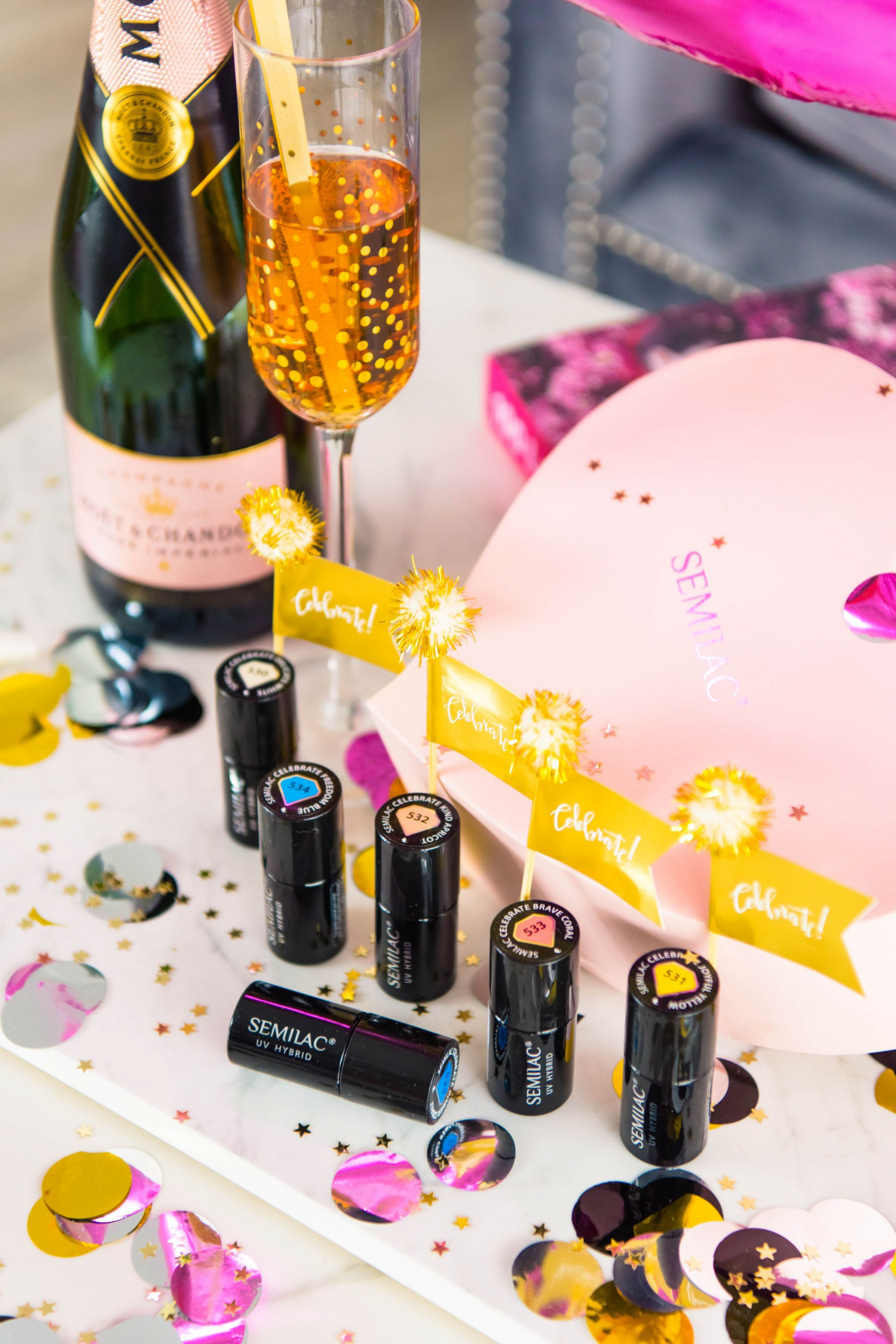 W związku z urodzinami Semilac wypuścił kolekcję Celebrate czyli 6 lakierów stworzonych specjalnie na tę okazję przez ambasadorki marki- Margaret i Agnieszkę Woźniak-Starak.
