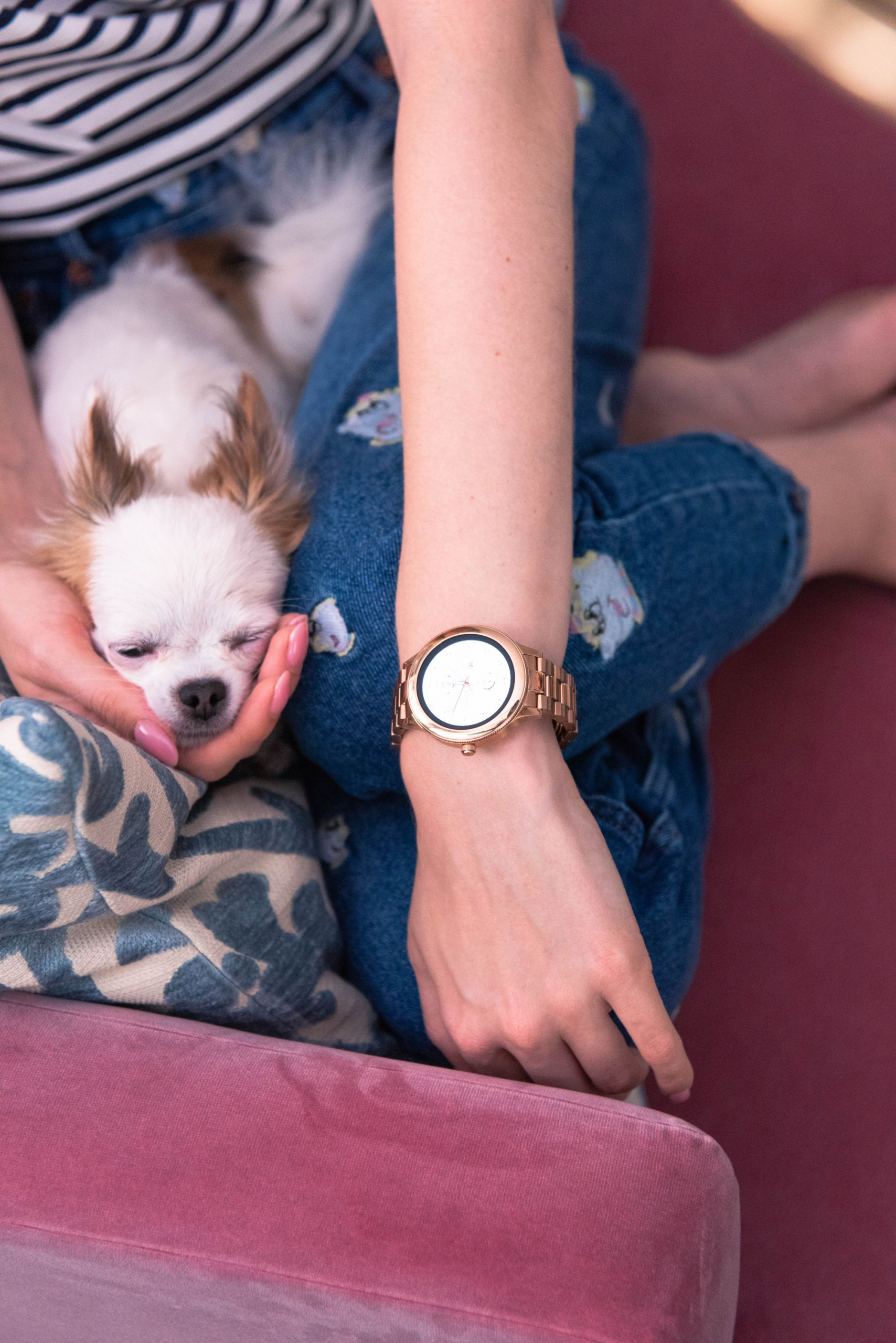 Zazwyczaj stawiam na jeansy, chociaż bawełniany lub kaszmirowy dres również w moim przypadku wchodzi w grę. Do tego wygodny t-shirt i jedna z niezliczonych już w tym momencie par kapci. Nie będę Was oszukiwała, że po domu biegam obwieszona kolczykami, bransoletkami czy inną biżuterią. Jednym dodatkiem jest zegarek, z nim się w zasadzie nie rozstaję. Odkąd mam w domu Smart Watch Fossil Q, stał się on moją trzecią “bazą dowodzenia” po laptopie i telefonie. Jedną z jego najlepszych zalet jest to, że przychodzą na niego wszystkie powiadomienia, dzięki temu nie muszę sprawdzać co chwilę na telefonie co dzieje się na moich social mediach. Poza tym dzięki synchronizacji kalendarza przypomina mi o wszystkich spotkaniach i wydarzeniach, które do niego wpisałam. Dzięki temu przy moim całym zabieganiu i zakręceniu nic mi nie umknie. Nawet zaczęłam się trochę mniej spóźniać, co uważam za ogromny progres w walce z jedną z moich największych wad 🙂