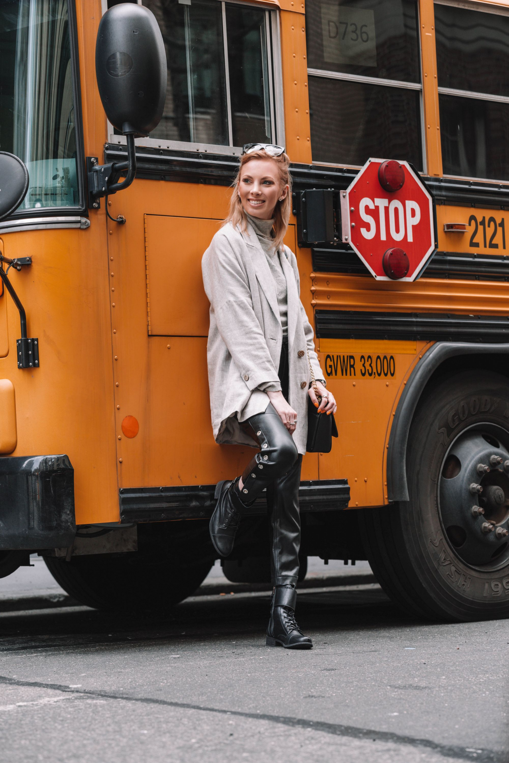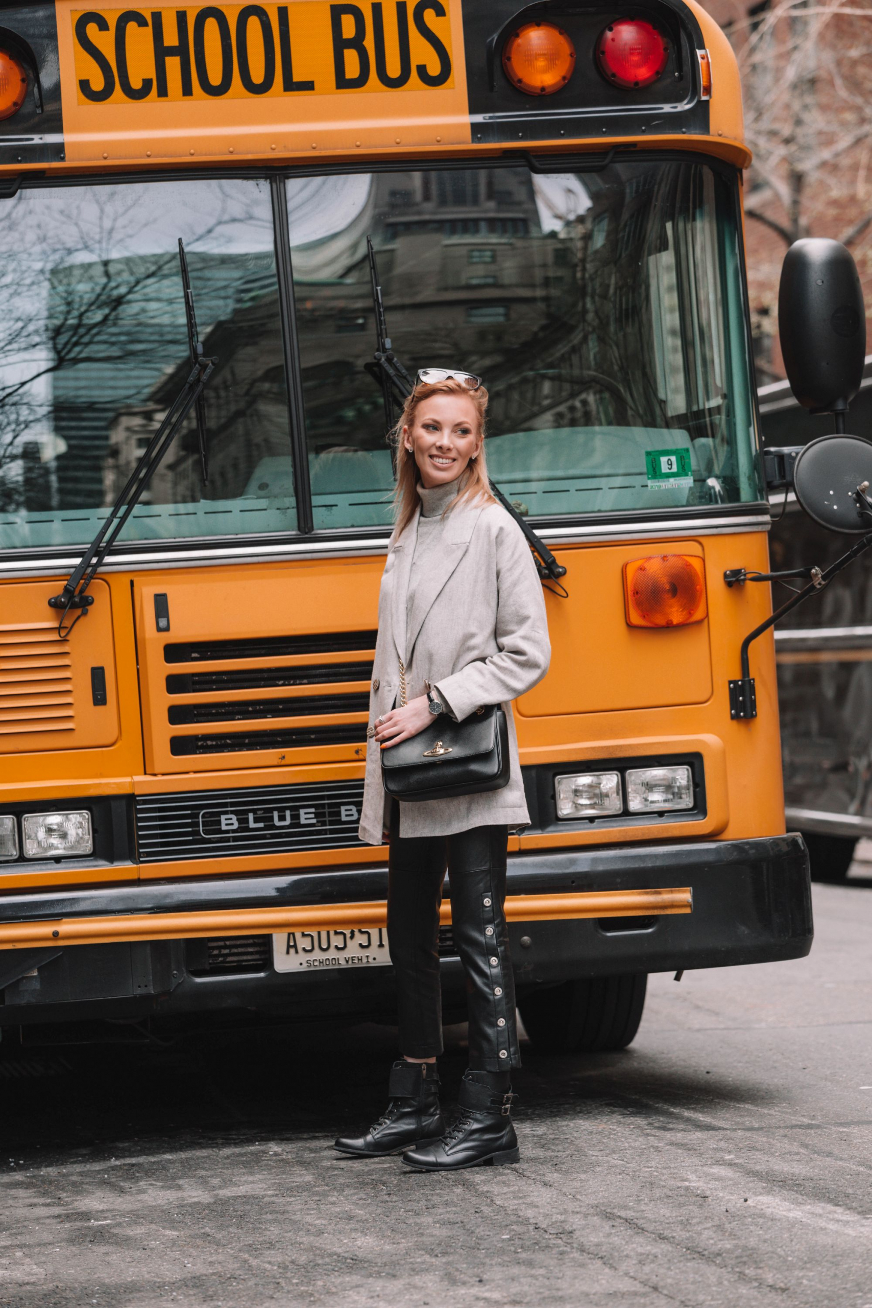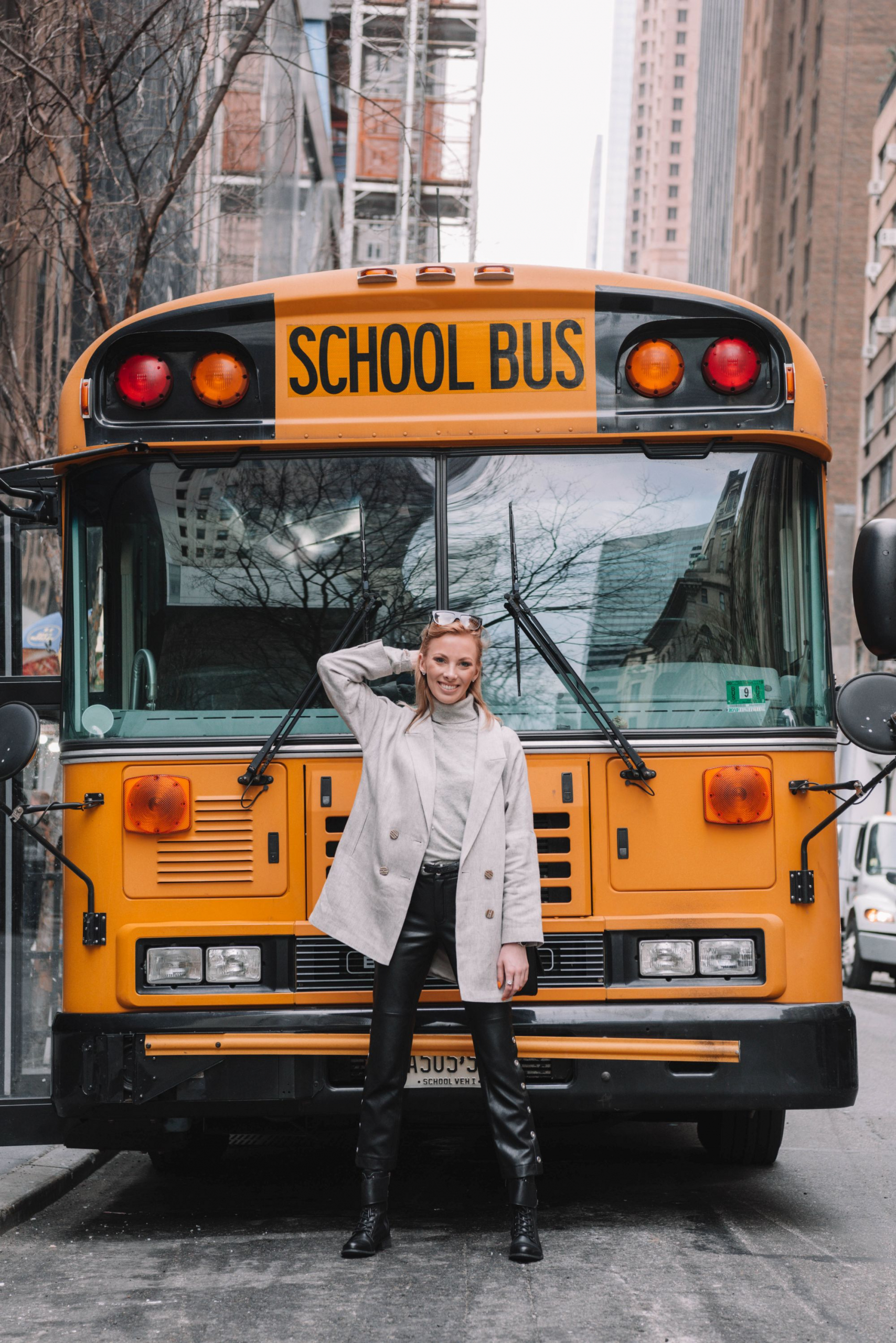 Dzisiejsze popołudnie spędziłam przygotowując dla Was nowego posta ze stylizacją. Zdjęcia znajdziecie oczywiście poniżej. To drugi z zestawów, który sfotografowaliśmy w Nowym Jorku. Idąc po moje ślubne buty do butiku Manolo Blahnika (swoją drogą jeśli przegapiliście galerię z butami na moim IG, to podsylam Wam tutaj link) trafiliśmy na tyłach muzeum MOMA na szkolne autobusy, które czekały, by odebrać dzieciaki zwiedzające to jedno z najpopularniejszych nowojorskich muzeów. Wykorzystaliśmy tę okazję i posłużyły nam one za tło do zdjęć.