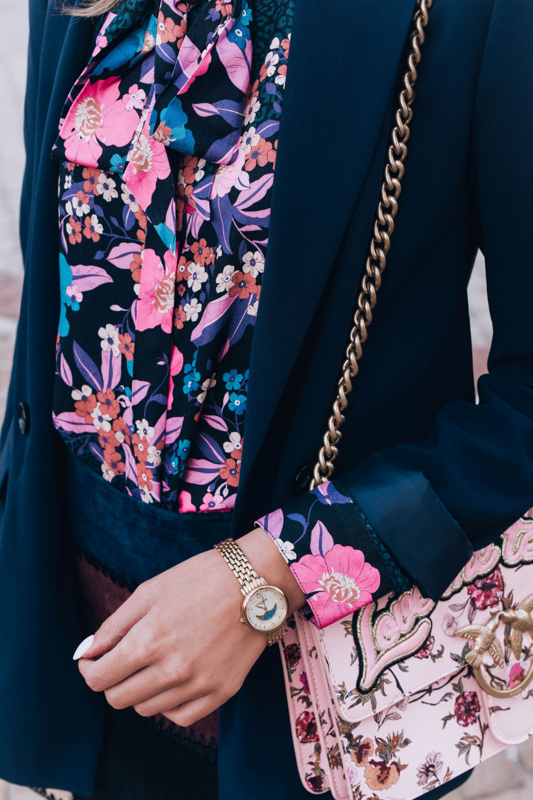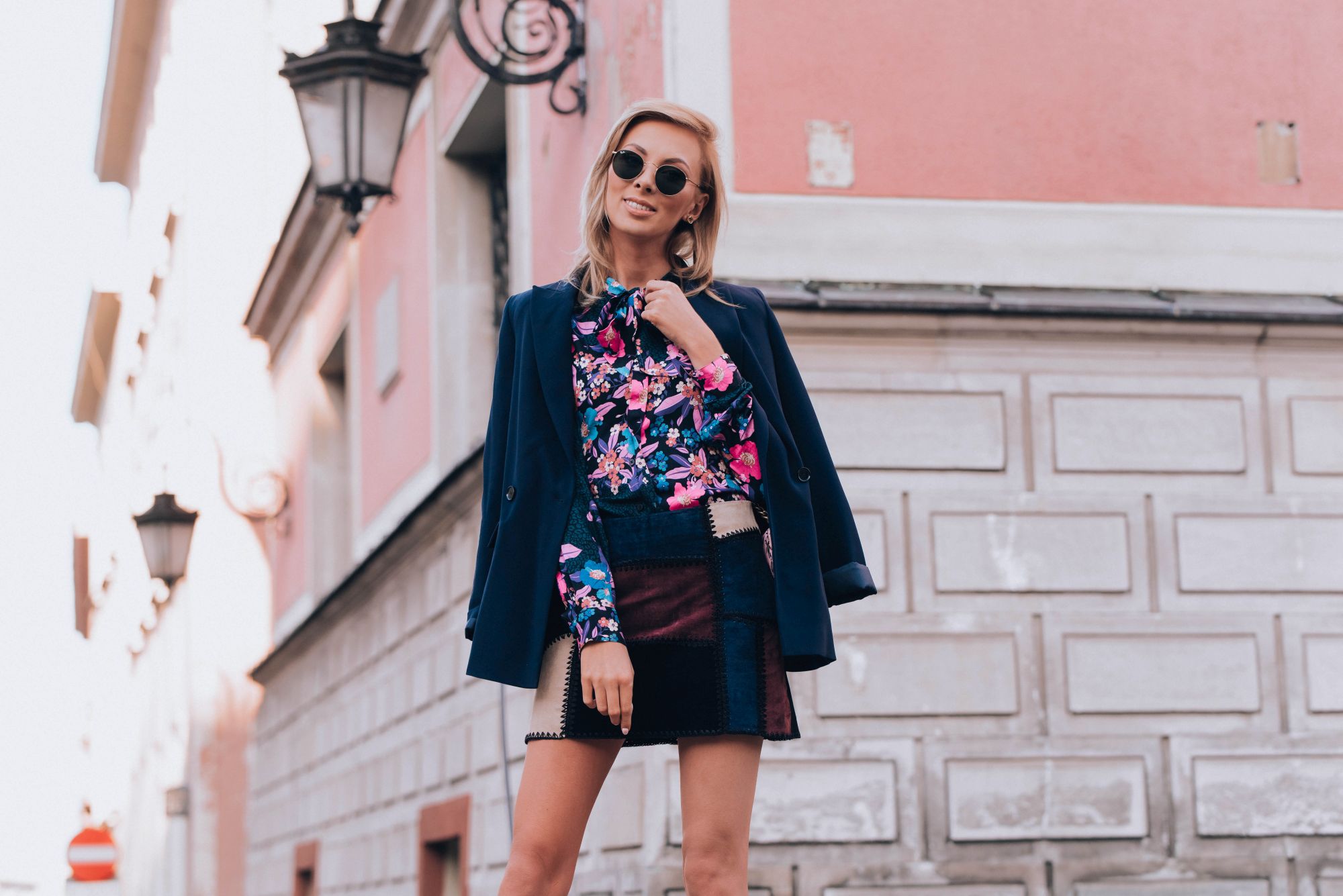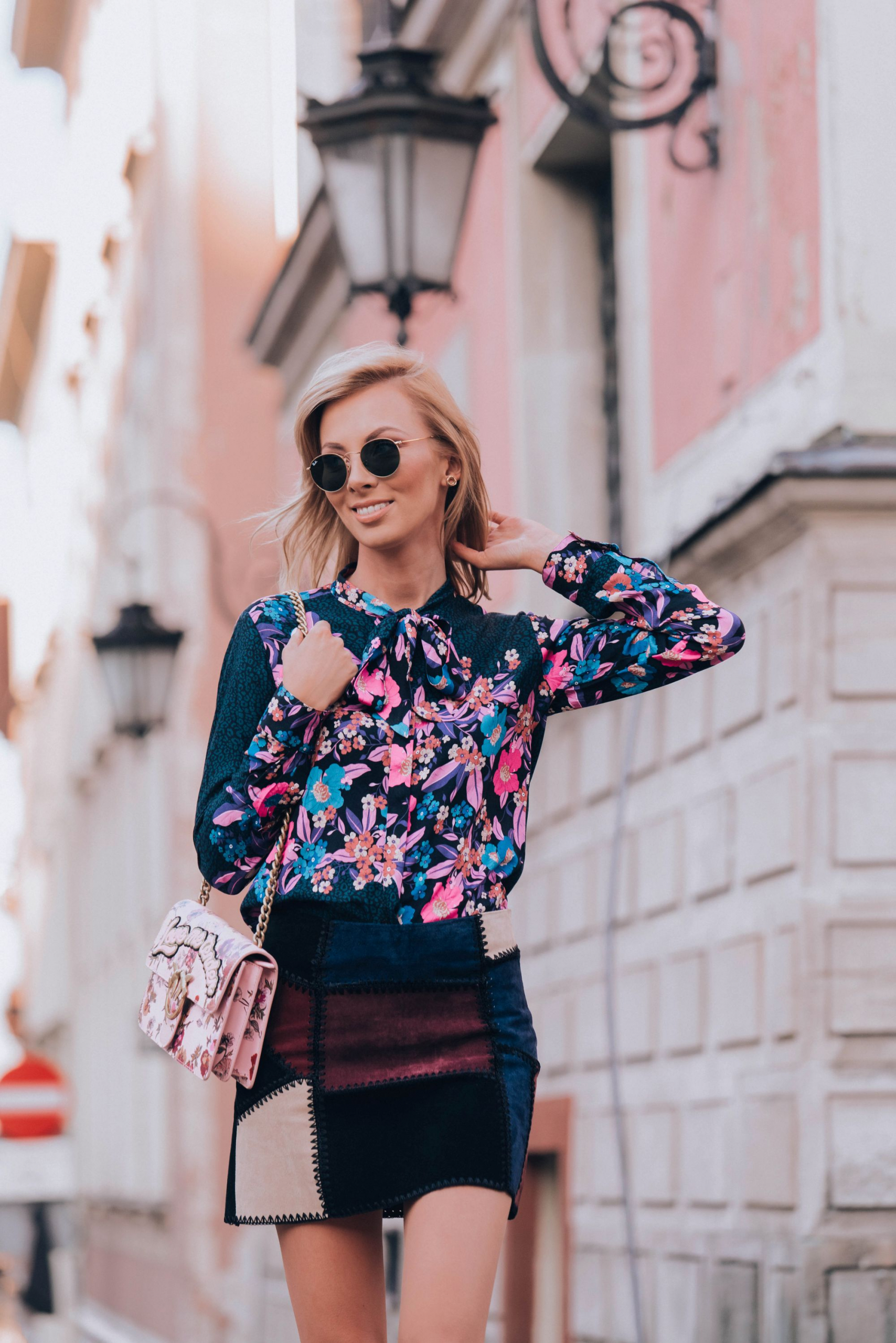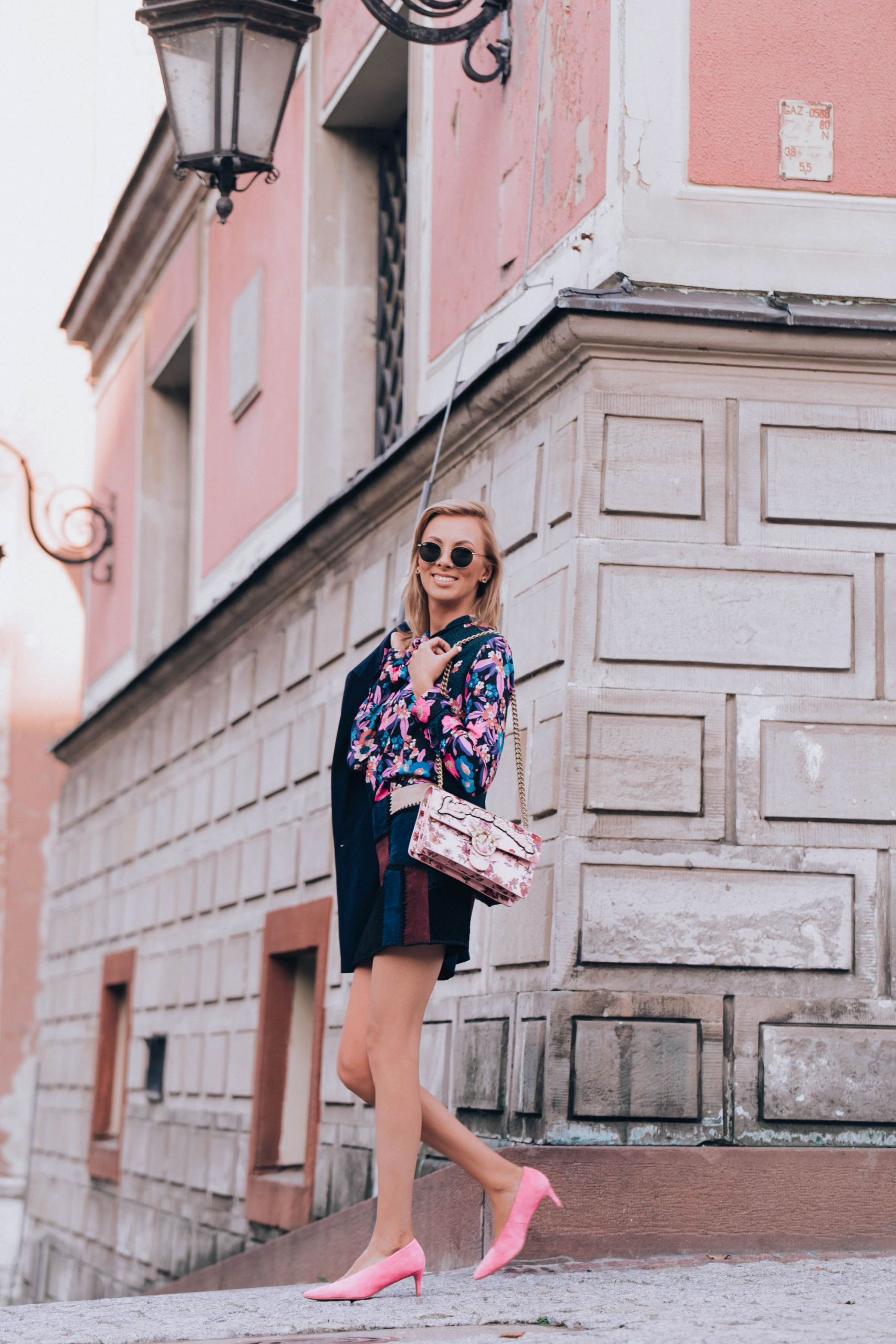 Do tego dobrałam żakiet kolejnej polskiej marki którą uwielbiam, a mianowicie Patrizia Aryton. To nie koniec elementów ‘made in Poland” . Buty pochodzą z mojego ukochanego L37, a biżuteria tradycyjnie z Apartu. Bardzo lubię wspierać polskie marki, szczególnie takie, za którymi dodatkowo idzie jakość. Łączę je zarówno z rzeczami z sieciówek (spódnica jest z Zary) jak i markowymi elementami, które służą mi potem latami (torebka Pinko). Ostatni element to moje ulubione okulary przeciwsłoneczne tego lata – Raybany . Chodziłam w nich prawie całe lato.