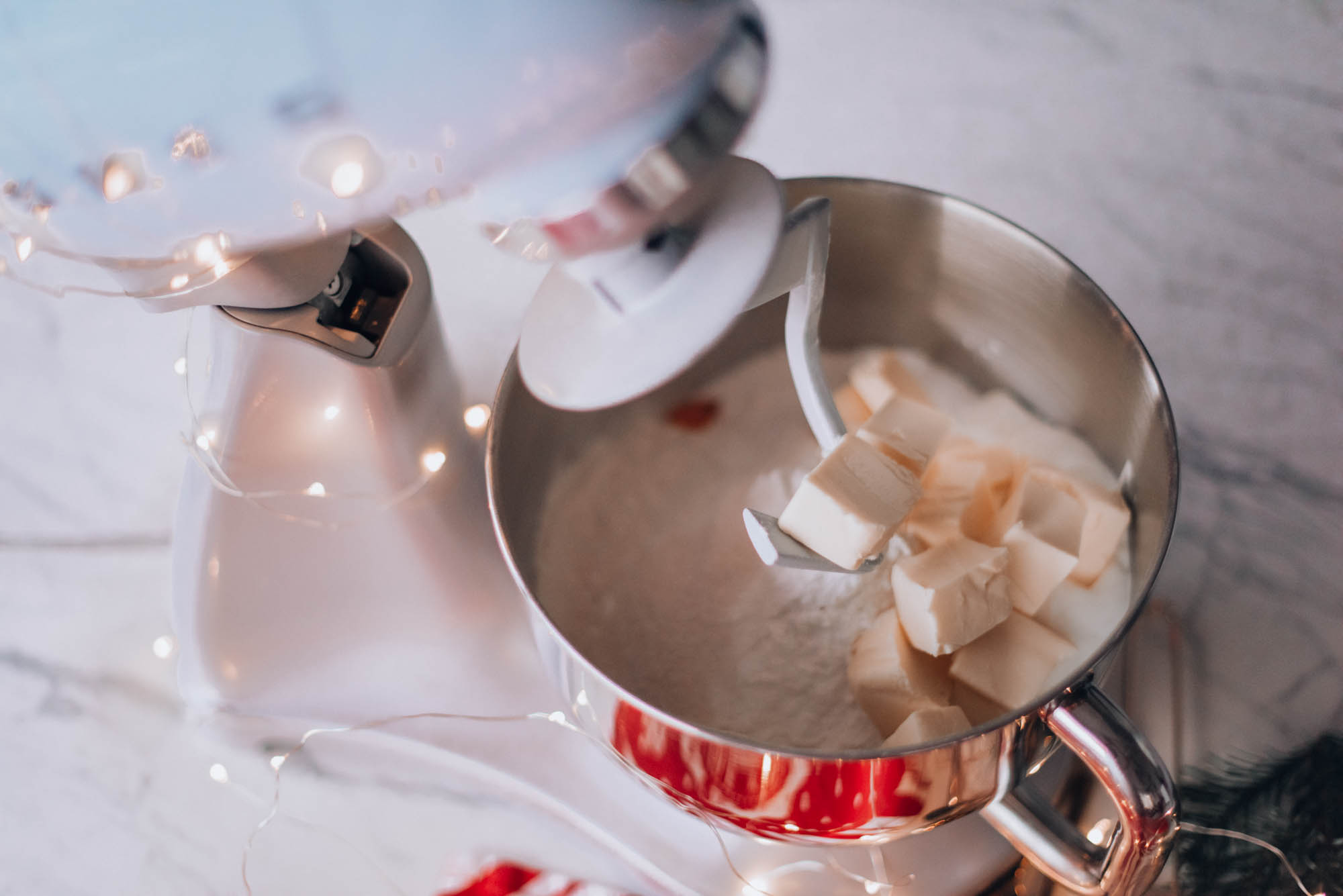 -300 g masła (koniecznie dobrej jakości-82%. Między innymi od niego zależy smak ciastek). Pamiętajcie żeby wyjąć je wcześniej z lodówki i pokroić na mniejsze kawałki.